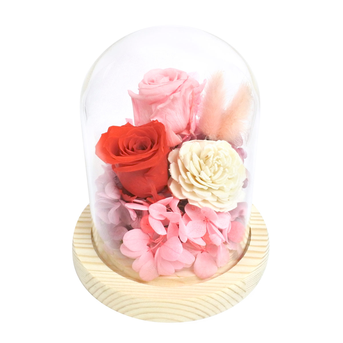 ●ガラスドームに包まれたプリザーブドフラワーアレンジメントです。