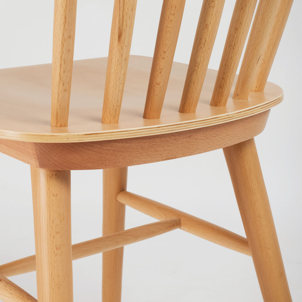 ビーチ材は、適度な粘り気と柔軟性を持っており、曲木加工に最適な木材です。木の繊維を断ち切らずに滑らかに曲げることができるため、美しいカーブを持つチェアに仕上がります。