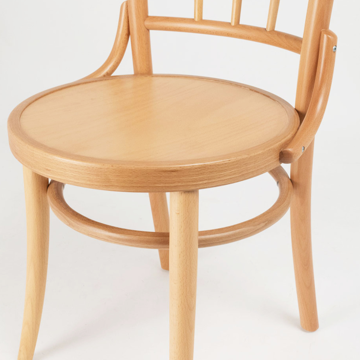 ビーチ材は、適度な粘り気と柔軟性を持っており、曲木加工に最適な木材です。木の繊維を断ち切らずに滑らかに曲げることができるため、美しいカーブを持つチェアに仕上がります。