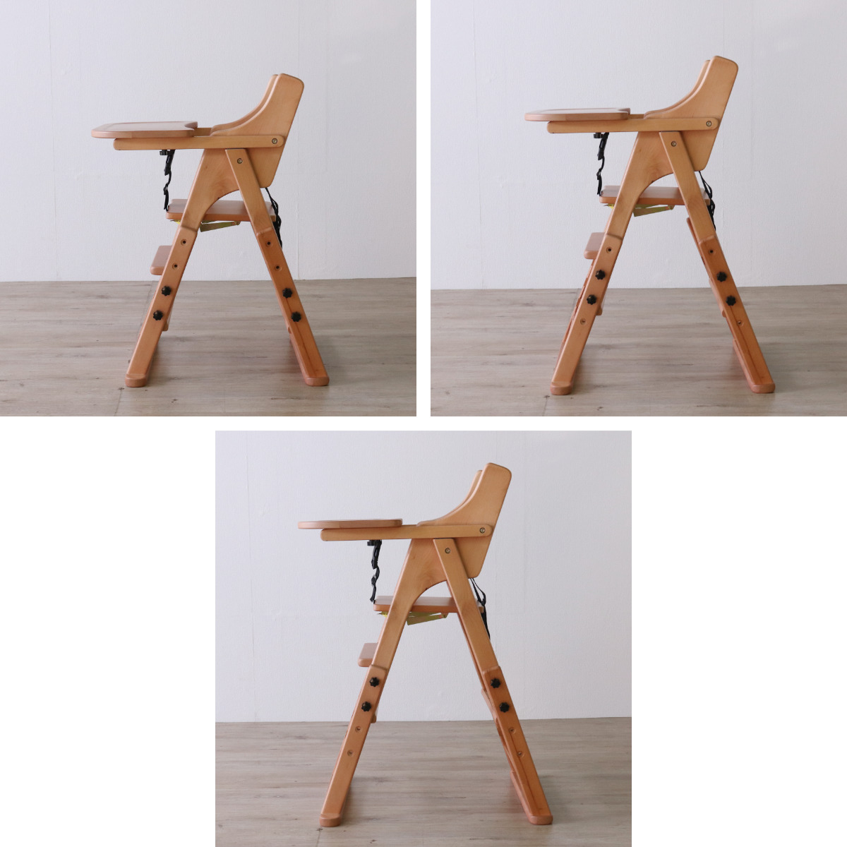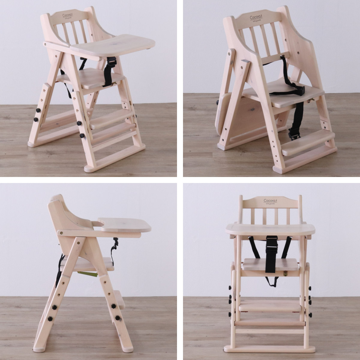 ダイニングに自然に馴染むデザインで、環境にも人にもやさしい水性塗料で仕上げたベビーチェア。お子様の「はじめてのお座り」に安心を添えてくれます。