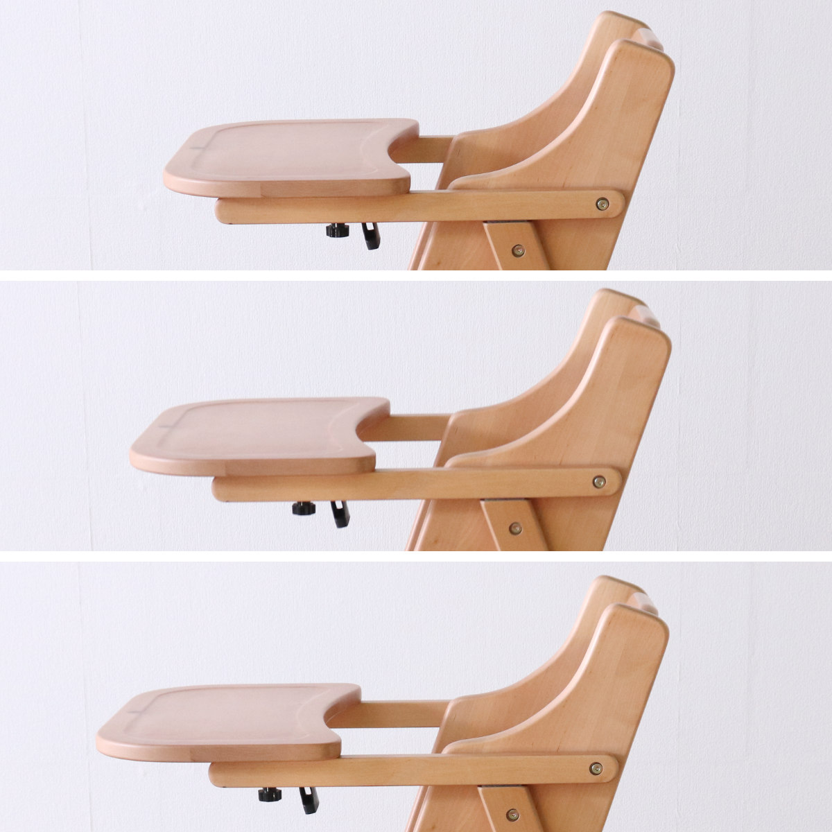 トレイの位置は前後3段階で調節でき、お子様が使いやすい位置に変えることができます。