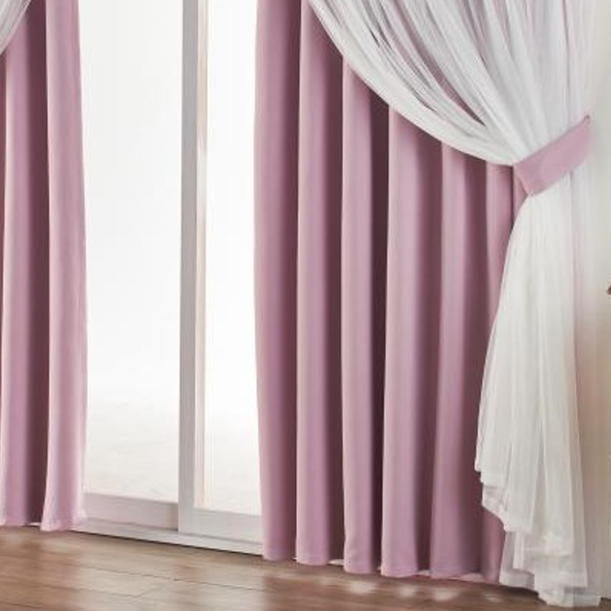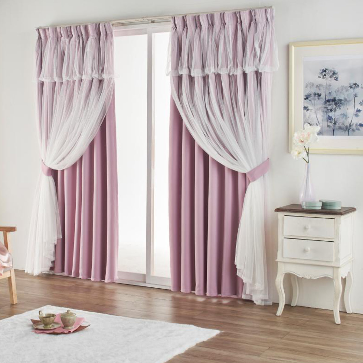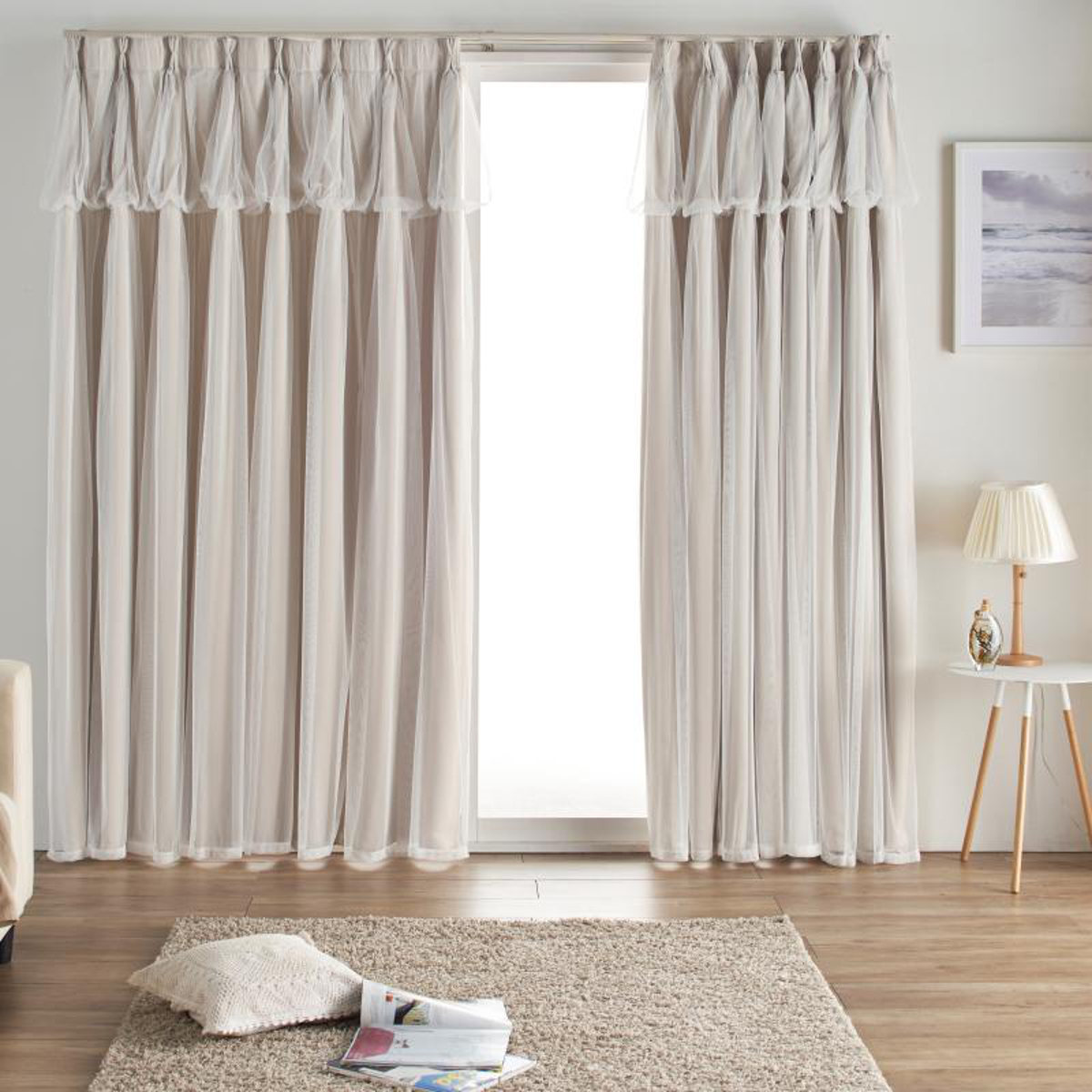 ドレープとレースが一体型となったレイヤードカーテン