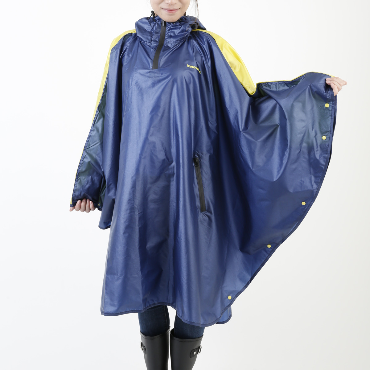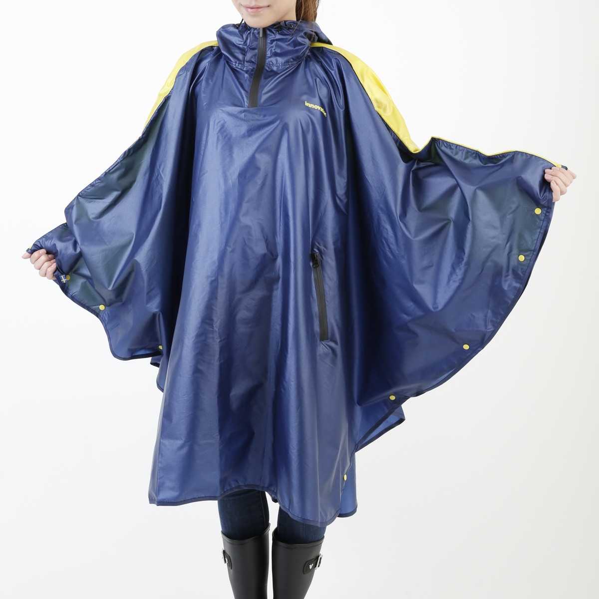 ポンチョの上からでも、中の洋服のポケットに手が届くベリーポケット付きです。荷物や小物の出し入れやスマホ操作もスムーズです。