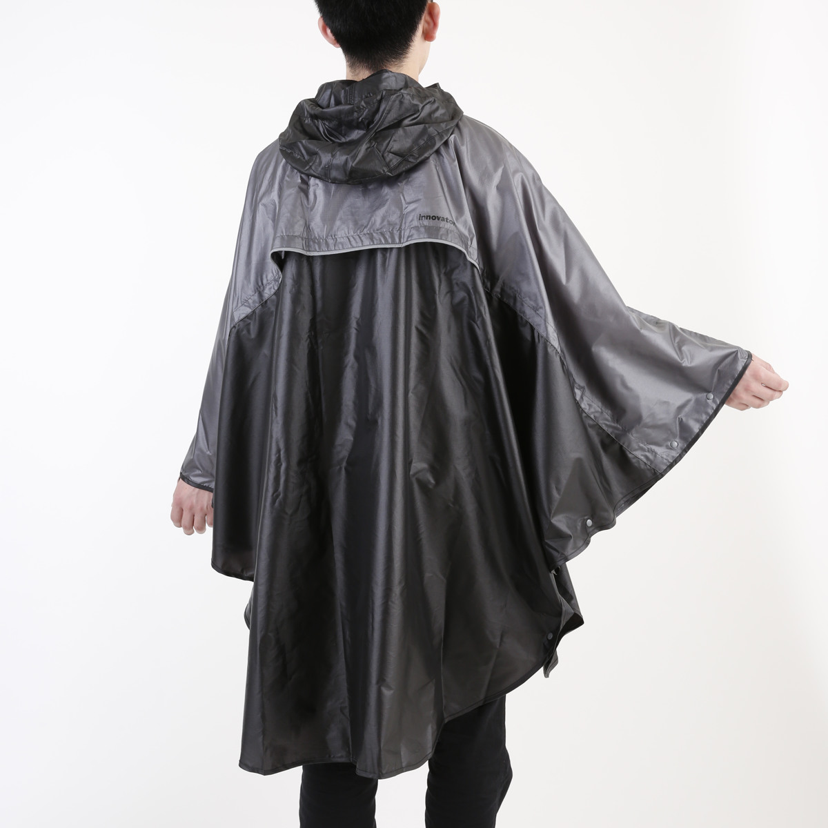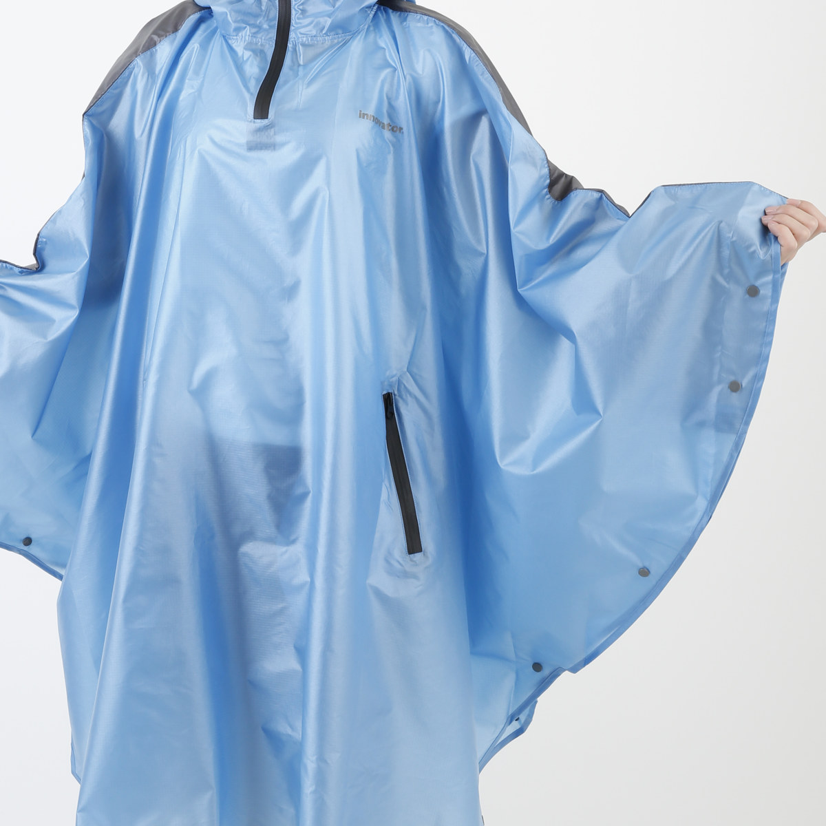 リュックやバッグの上からそのまま着られる、ゆったりとしたサイズ感。荷物を濡らさず、ストレスフリーで動けます。