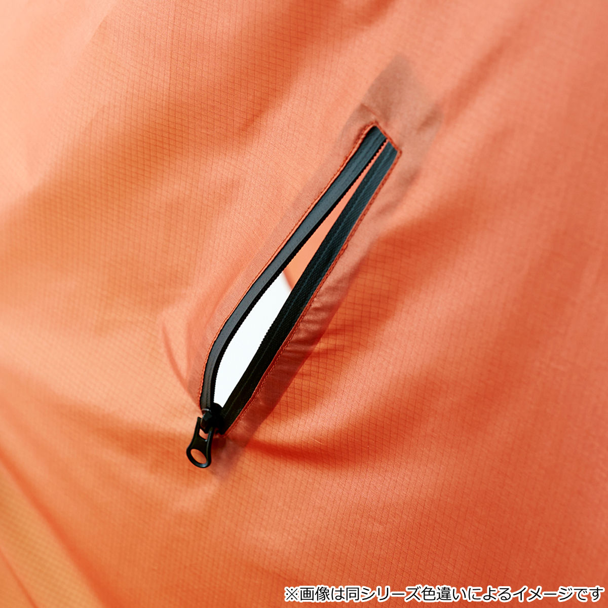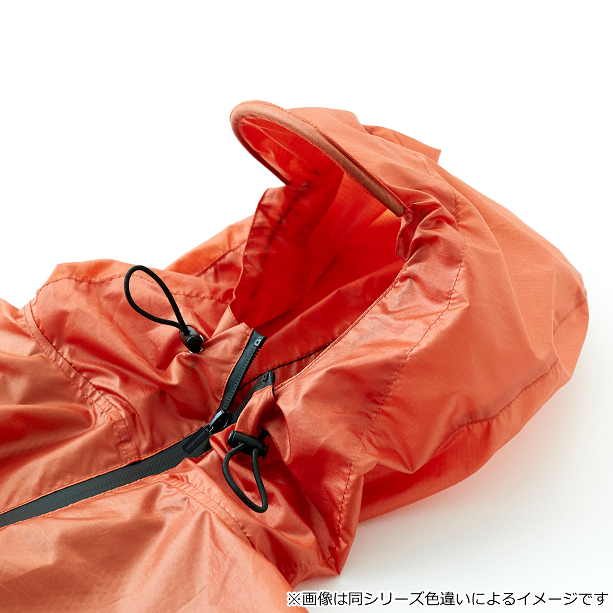 頭部を包み込む深めのフードにツバと調整ひも付き。フードが頭にフィットするので、アクティブに動いてもズレにくく、顔まわりの濡れや首元からの水の侵入を抑えてくれます。