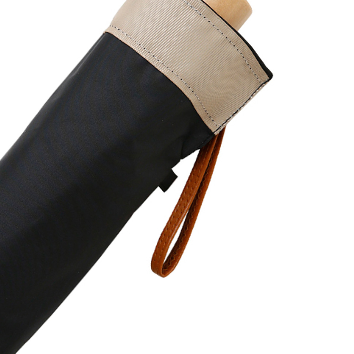 手元部分には、傘のデザインに合わせた落ち着いたカラーの合皮ストラップが付いています。持ち歩く際に手に掛けたり、フックなどに掛けられたりと何か便利です。