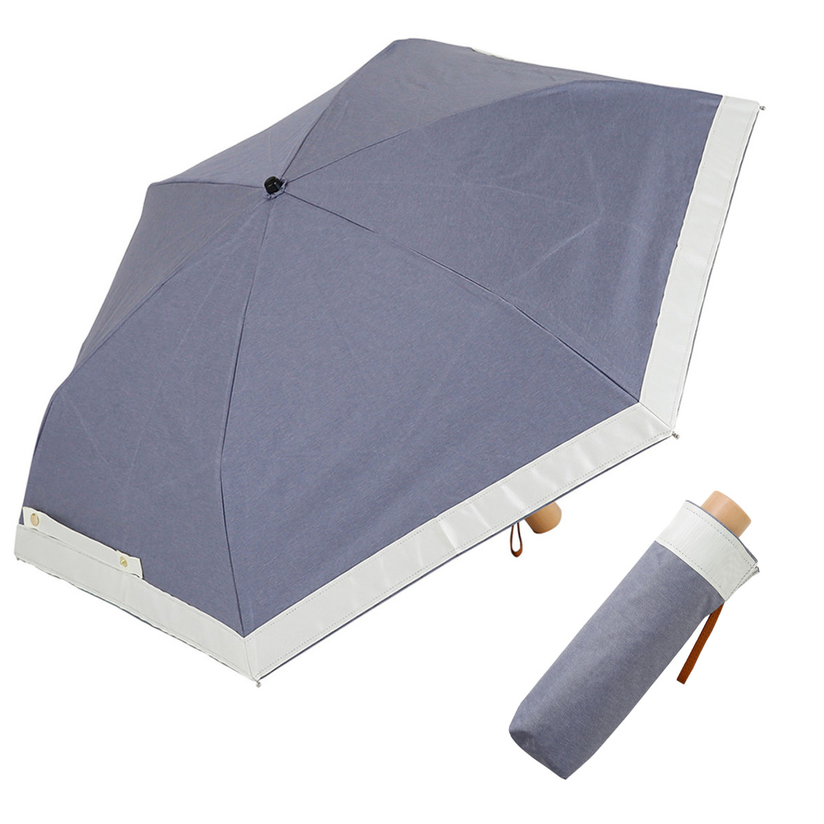 たたんだ時にコンパクトになる3段折りたたみ式です。折りたたみ傘はカクカクした形になりがちですが、丸みを帯びた骨を採用することで、長傘のようなきれいな形状を実現しています。