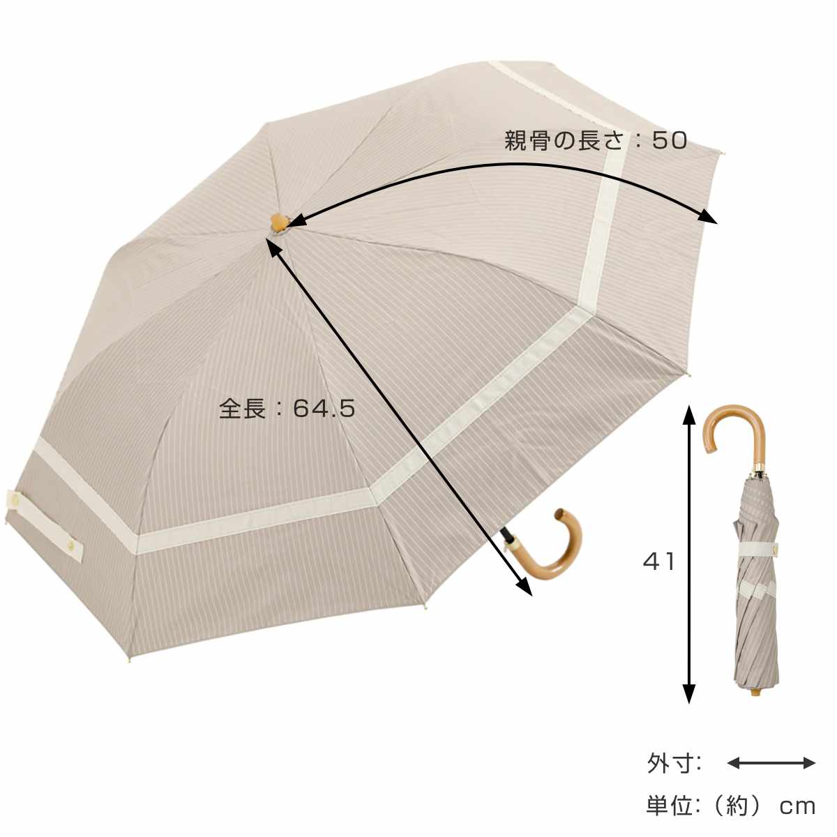 | サイズ | 親骨の長さ:約 50cm 全長の長さ:約 64.5cm 直径:約 90cm 持ち手の長さ:約 9.5cm 持ち手の太さ:約 1.5cm 収納時の長さ:約 41cm |