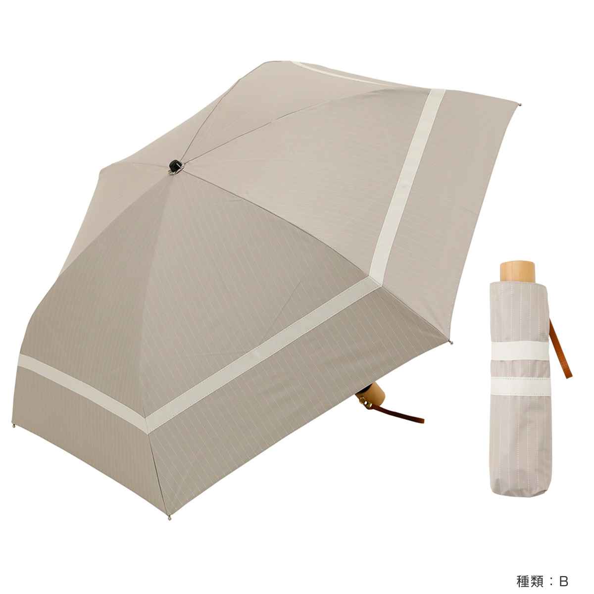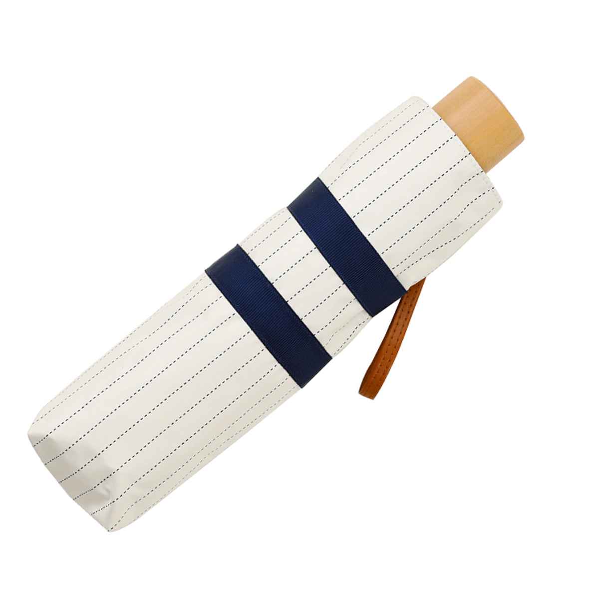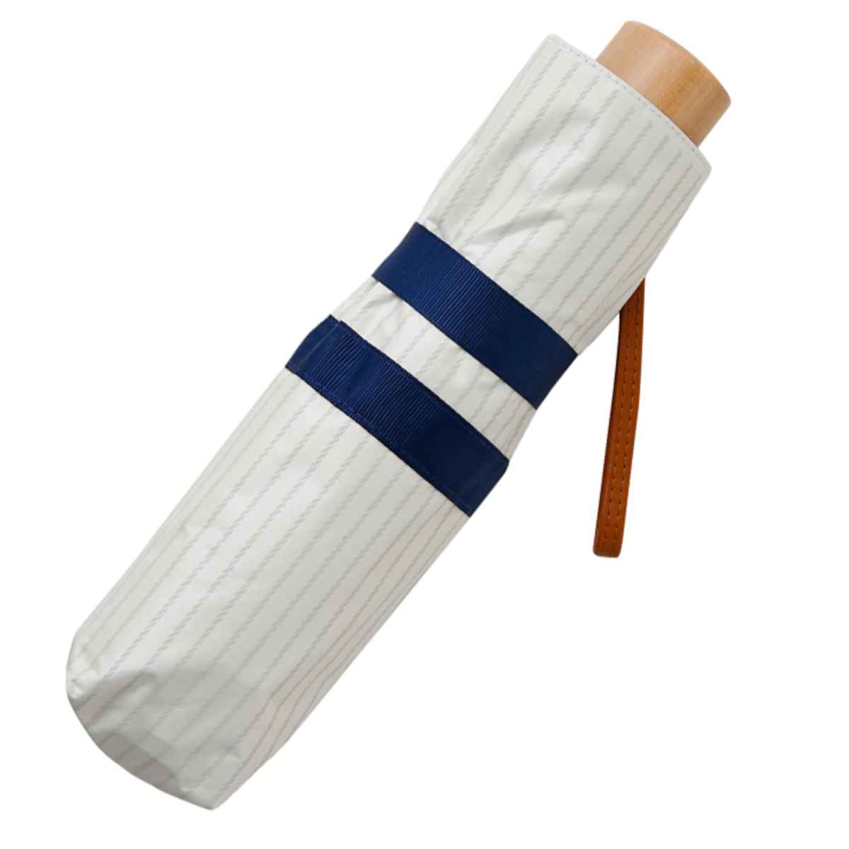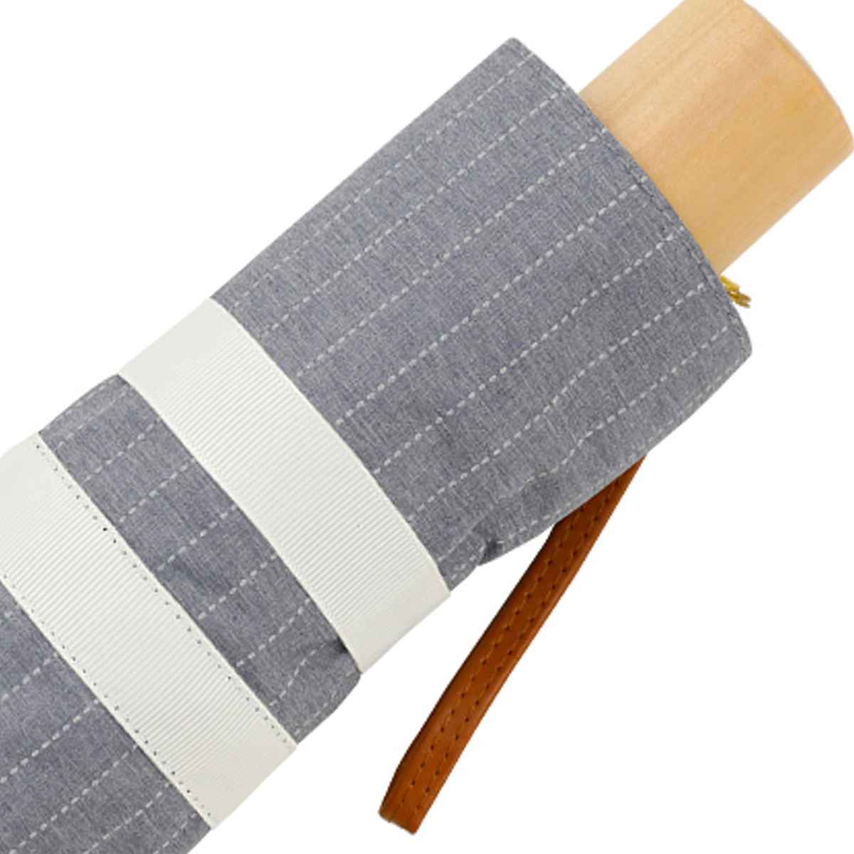 上品なデザインに調和する合板製のハンドルは、手にしっとりと馴染み、上質な質感を楽しめます。傘のデザインと合わせたストラップも付いているので、持ち運びもラクラクです。