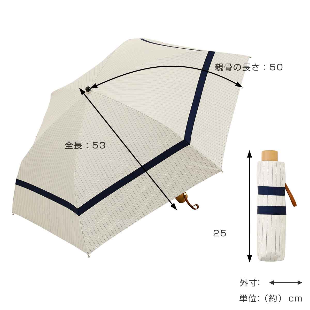 | サイズ | 親骨の長さ:約 50cm 全長の長さ:約 53cm 直径:約 88cm 持ち手の長さ:約 9.5cm 持ち手の太さ:約 1.5cm 収納時の長さ:約 25cm |