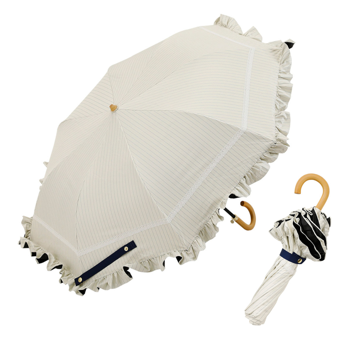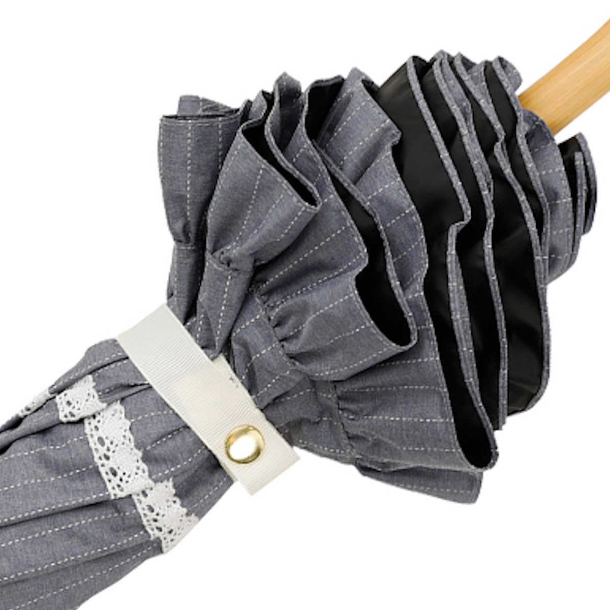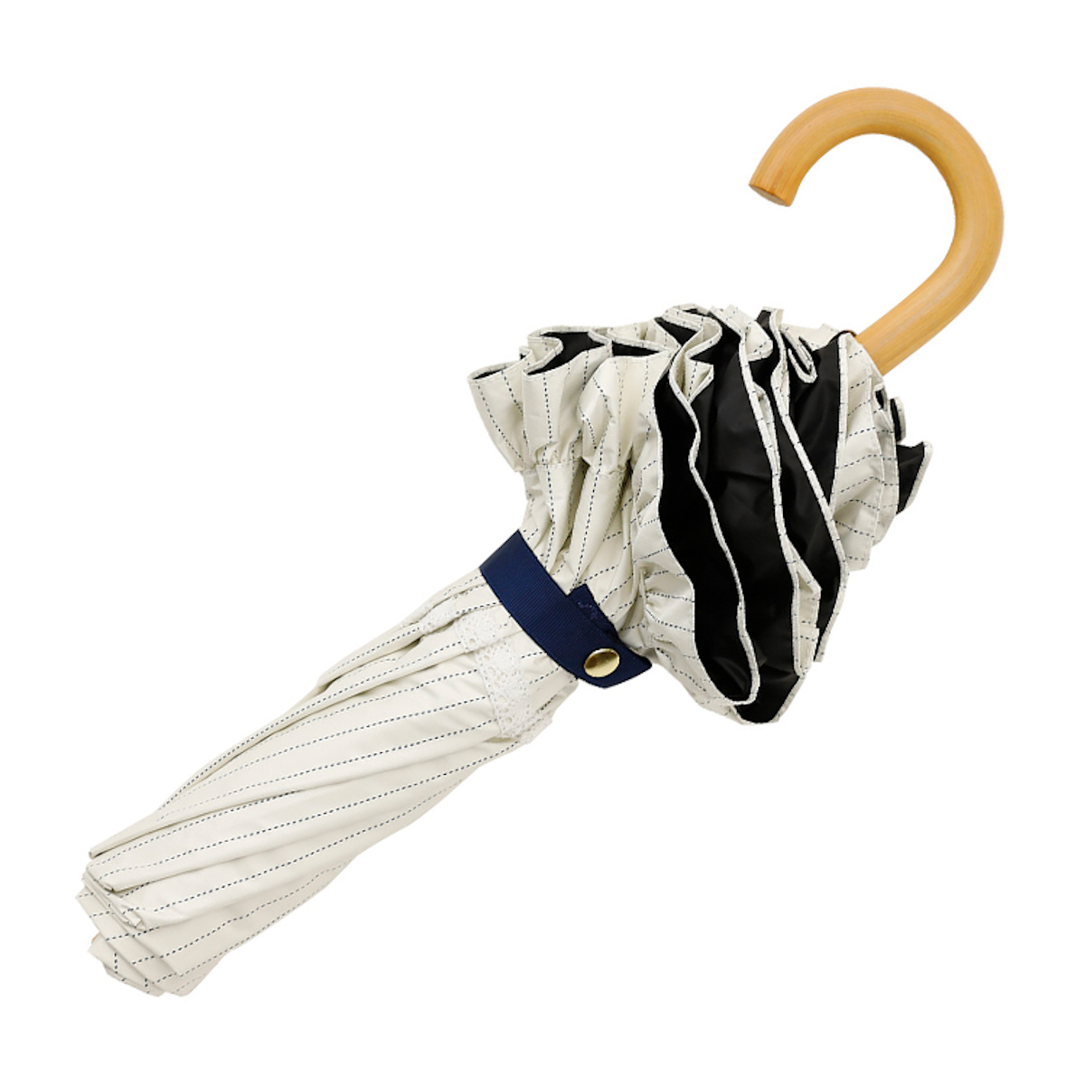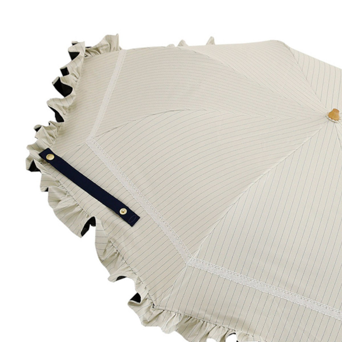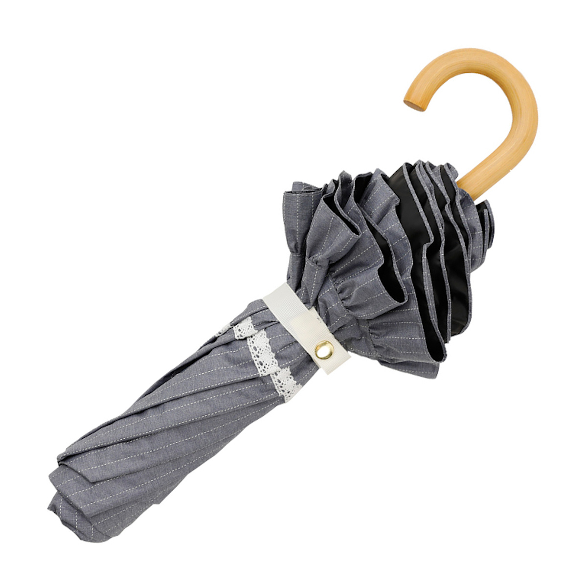 ●白のレースがアクセントになったフリル付き折りたたみ傘です。