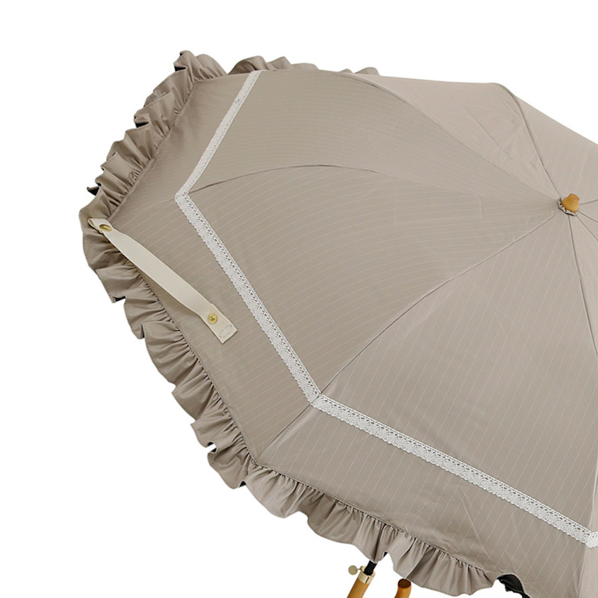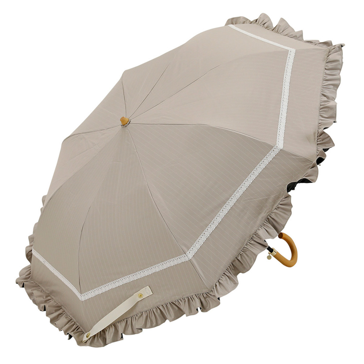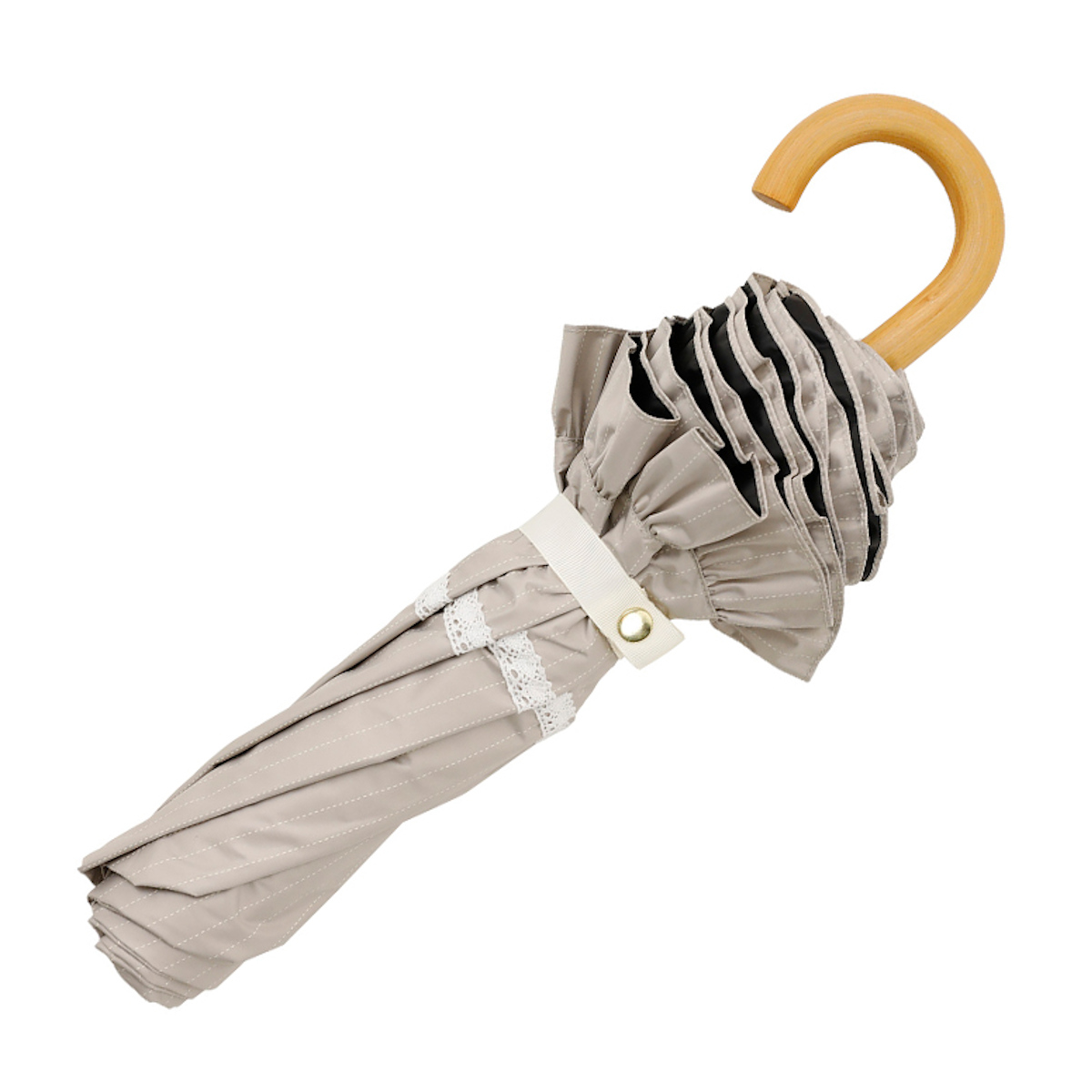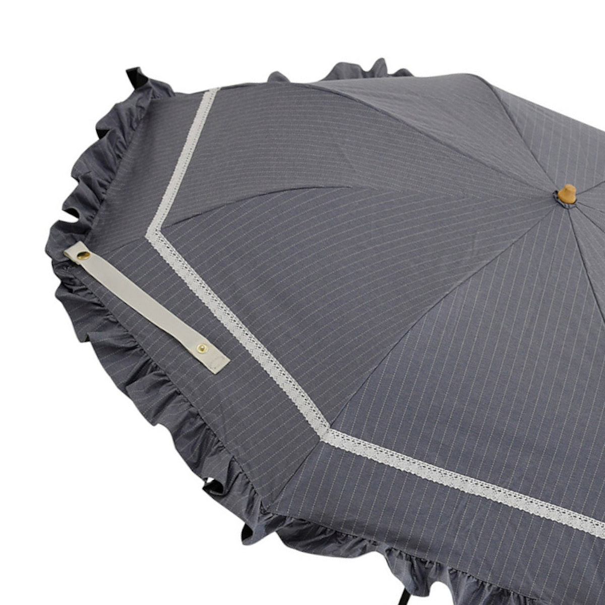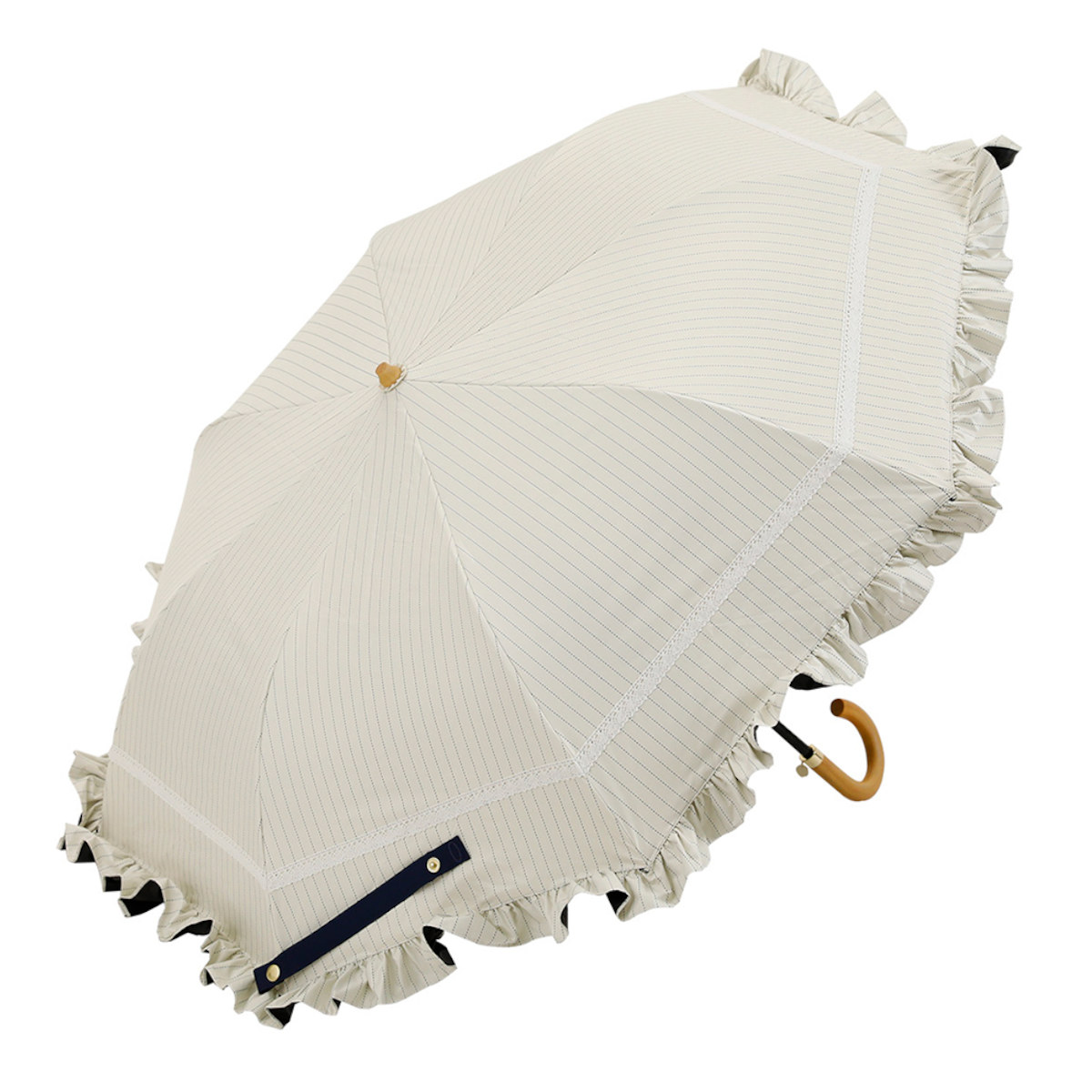 ●白のレースがアクセントになったフリル付き折りたたみ傘です。