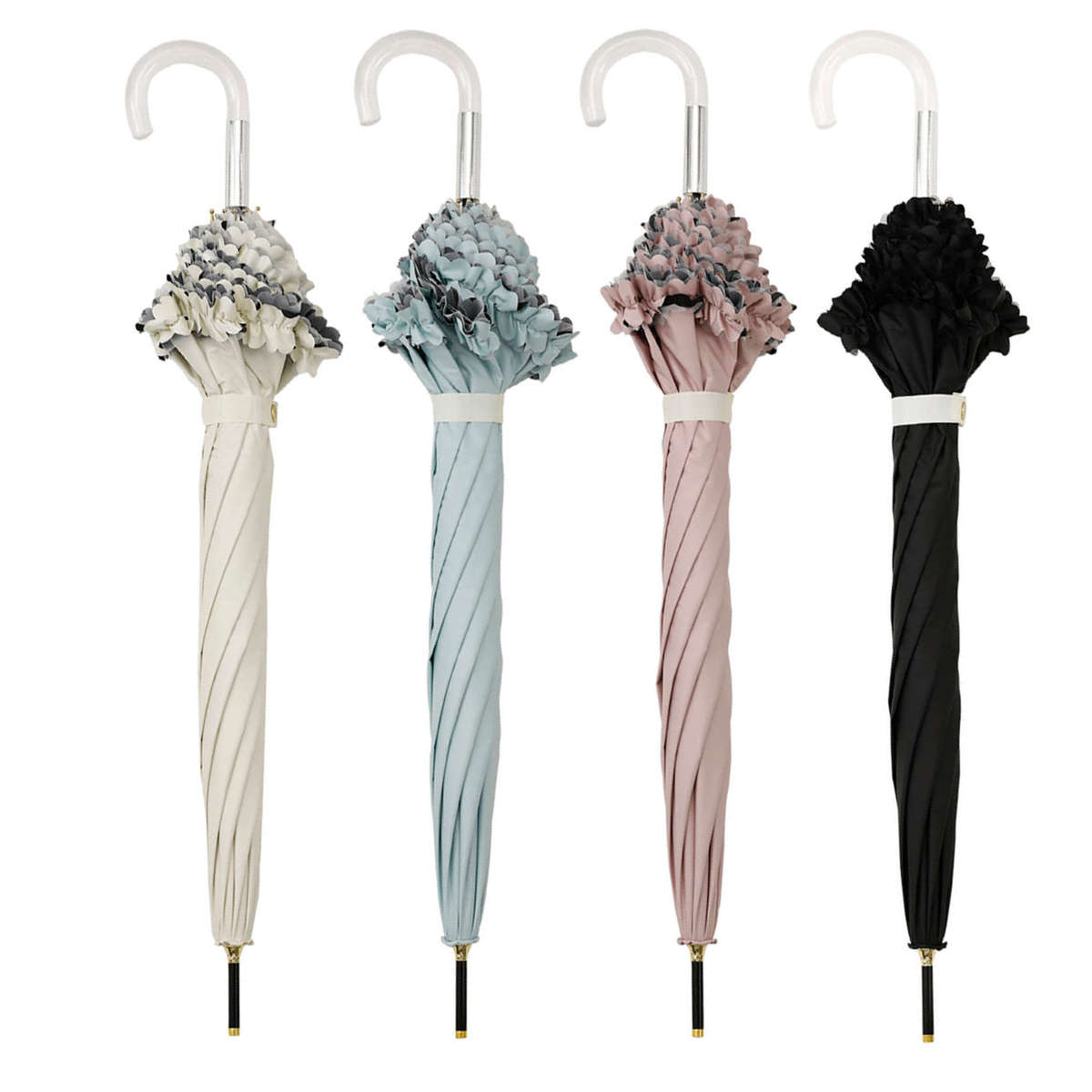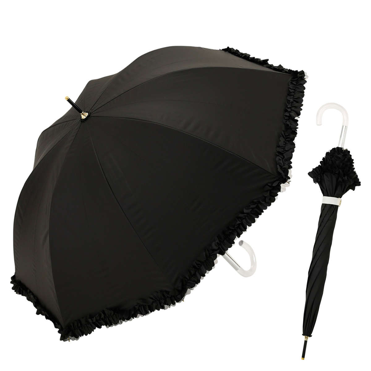 オンでもオフでも使える上品なデザイン 晴雨兼用フリルパラソル
