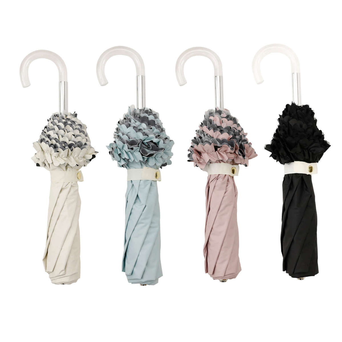 この傘を使うすべての人に輝いていて欲しい、そんな想いから生まれたシリーズです。日常使いはもちろん、特別なお出かけの装いにもマッチする、上品なエレガントさを兼ね備えています。
