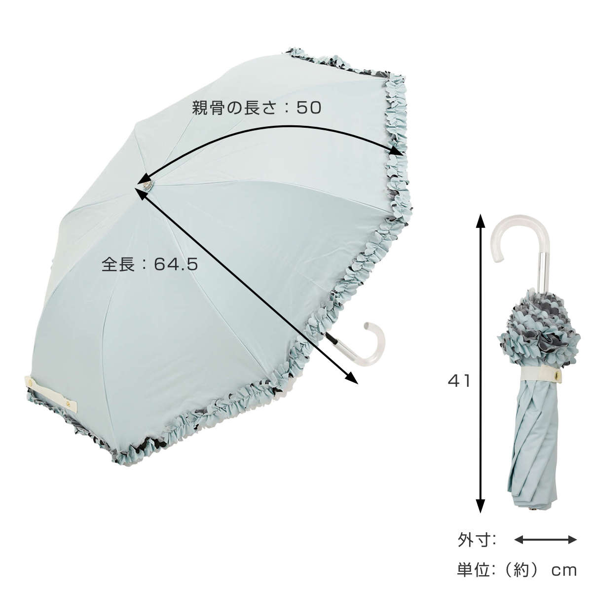 | サイズ | 親骨の長さ:約 50cm 全長の長さ:約 66cm 直径:約 90cm 持ち手の長さ:約 11.5cm 持ち手の太さ:約 1.6cm 石突の長さ:約 0.9cm 収納時の長さ:約 42cm |