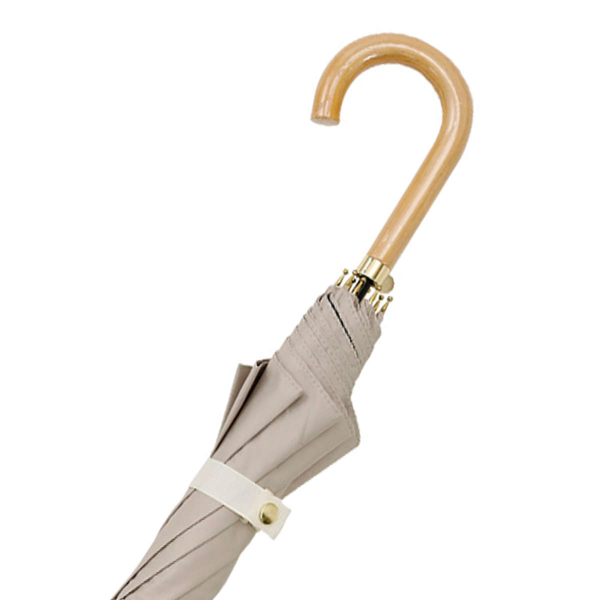 上品なデザインに調和する合板製のハンドルは、手にしっとりと馴染み、上質な質感を楽しめます。手元の付け根には、ゴールドのチャームがさりげなく輝き、洗練された印象を一層引き立てます。