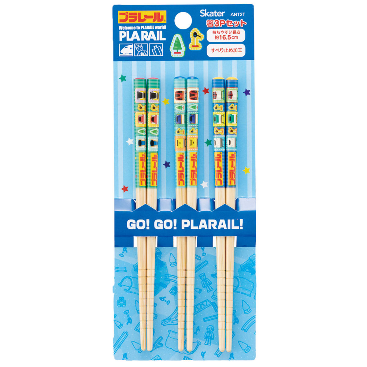 プラレールの竹製お箸、3膳セットです。お子様が使いやすい16.5cmサイズです。