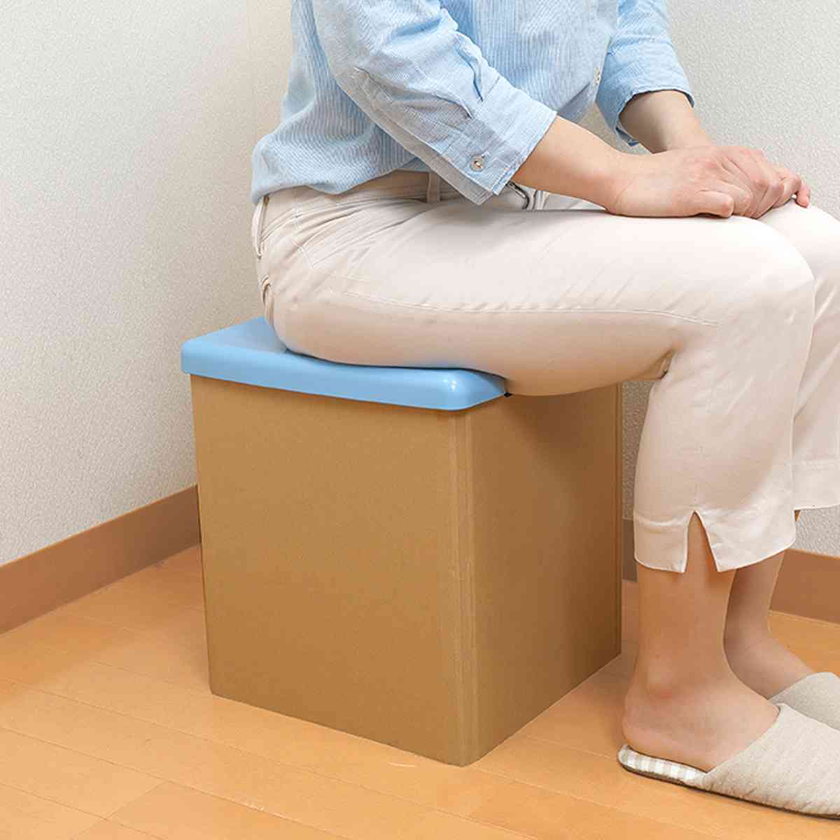 必要な時にすぐ組み立てて使える、段ボール製の簡易トイレです。プラスチック製の便座は水洗い可能で、衛生的にご使用いただけます。