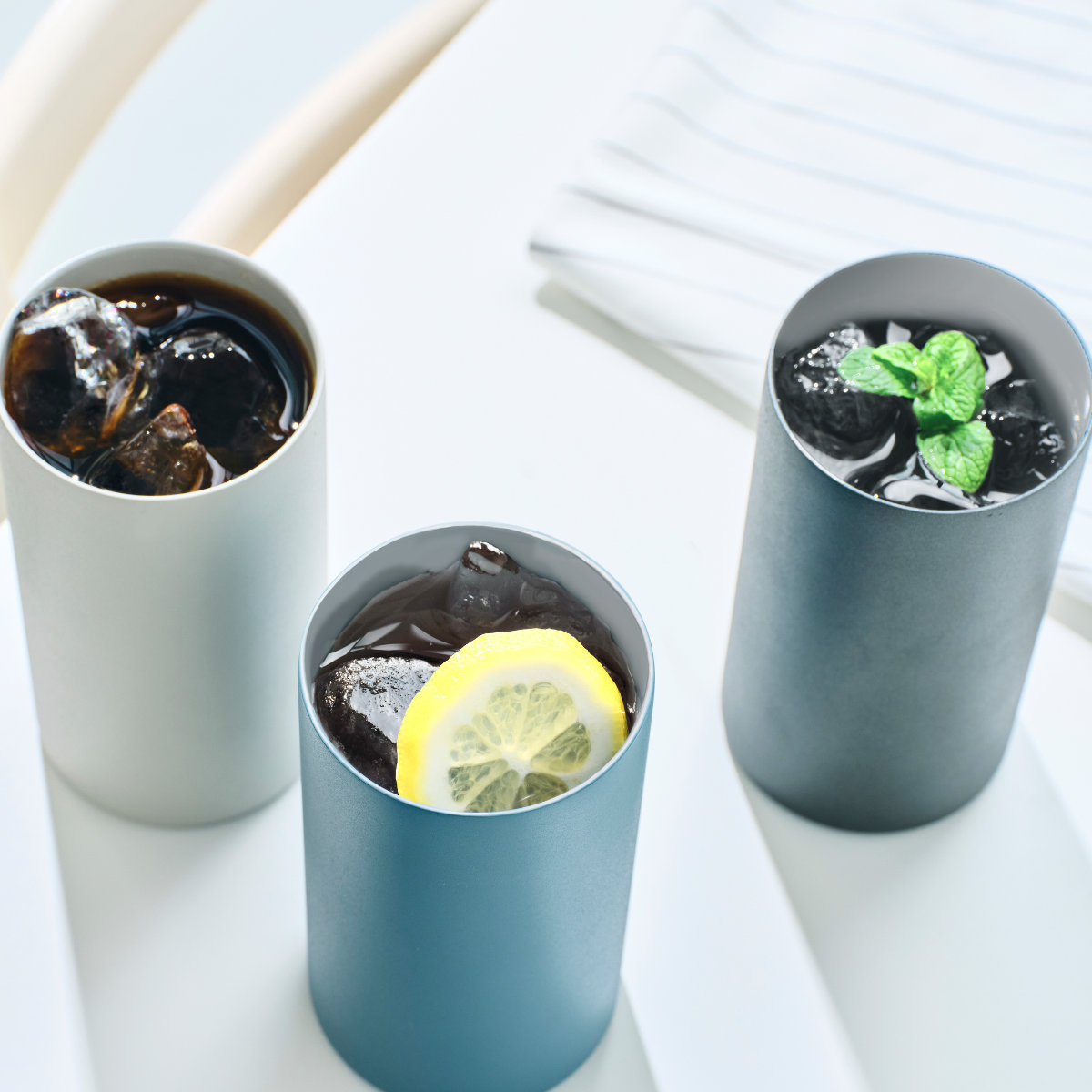 大きな丸氷も崩さずそのまま入れることが出来ます。レモンやミントを最後に入れてより一層美味しい見栄えです。