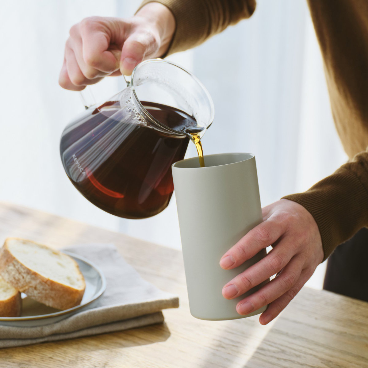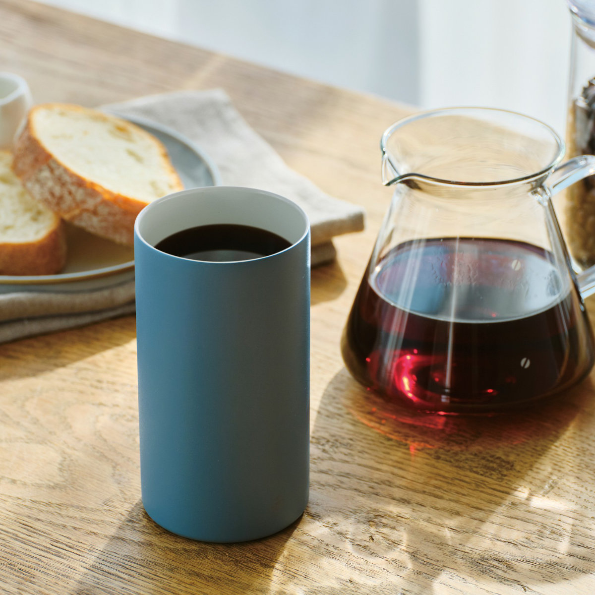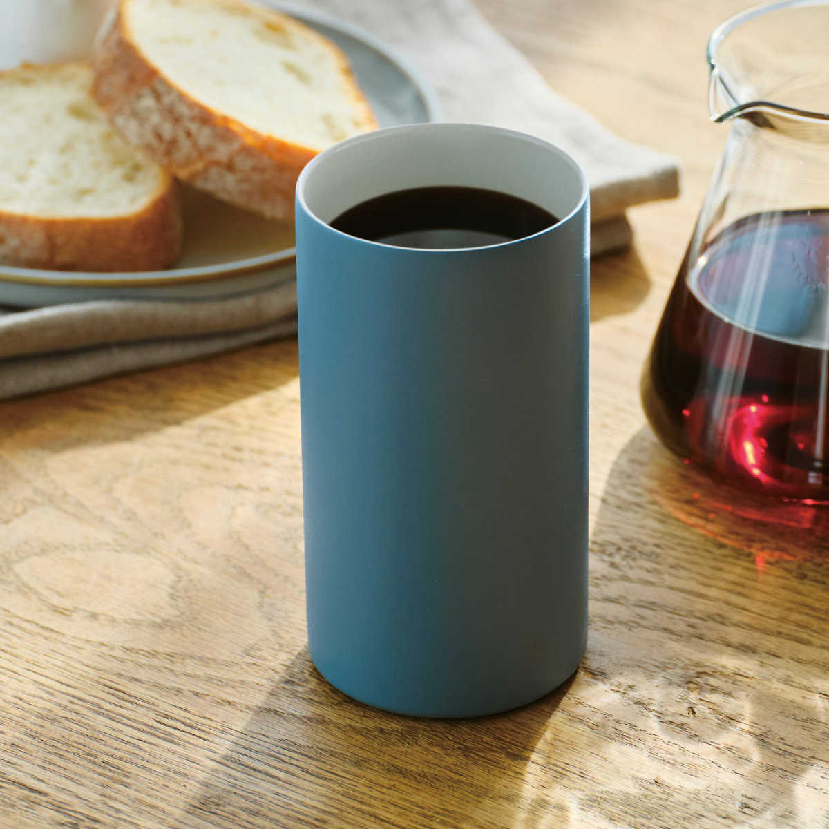 朝はコーヒーを夜はゆっくり飲みたい晩酌でも活躍します。シンプル形状なのでどんなシーンにも合わせやすいです。