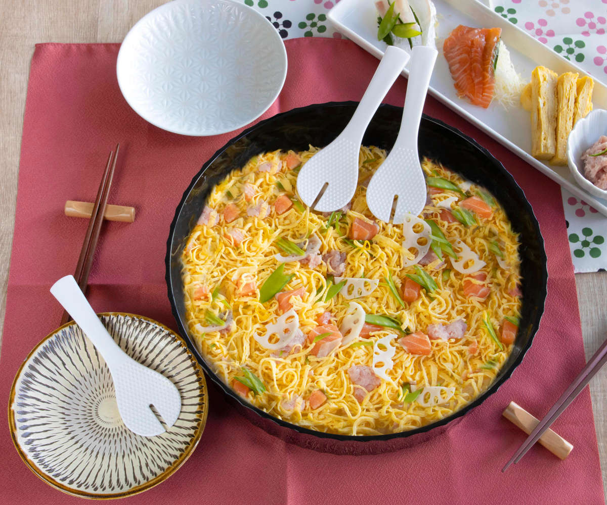 お好きな具材を用意して家族や友人と手巻き寿司が楽しめる、すし桶、しゃもじ3本の4点セットです。手巻き寿司だけでなく、ちらし寿司や行事ごとのごちそう作りに最適な寿司桶は、ご家族の集まりやお祝いごとなど特別な日の食卓を彩ります。