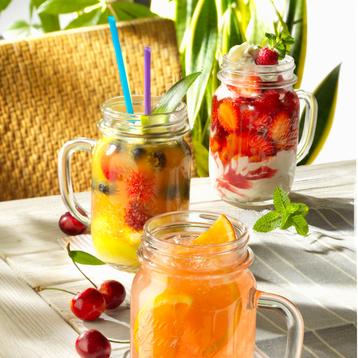 ガラスの透明感を活かして、フルーツやクリームの層を美しく演出します。パフェやフルーツスムージーを入れるだけで、まるでカフェのような見た目に仕上がります。
