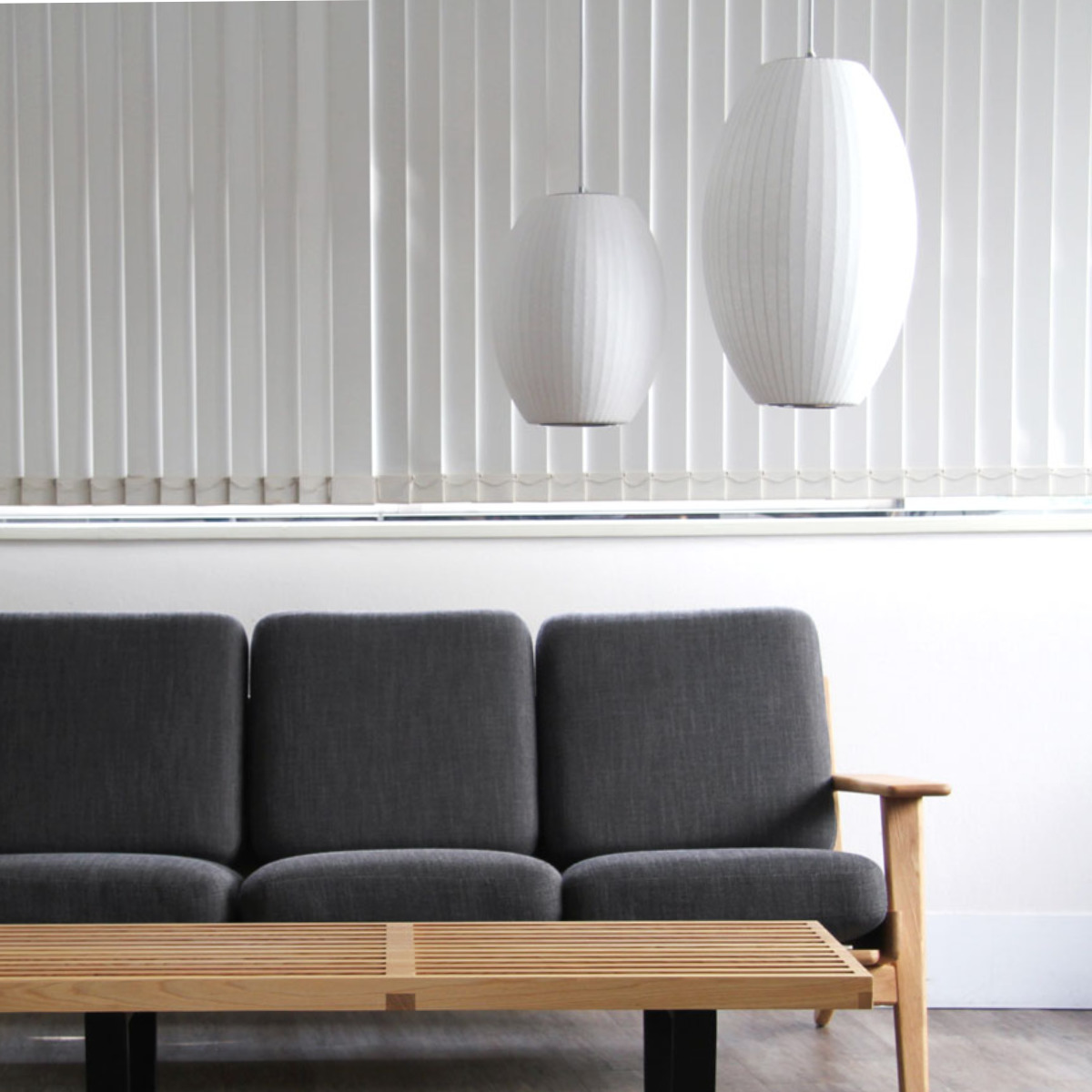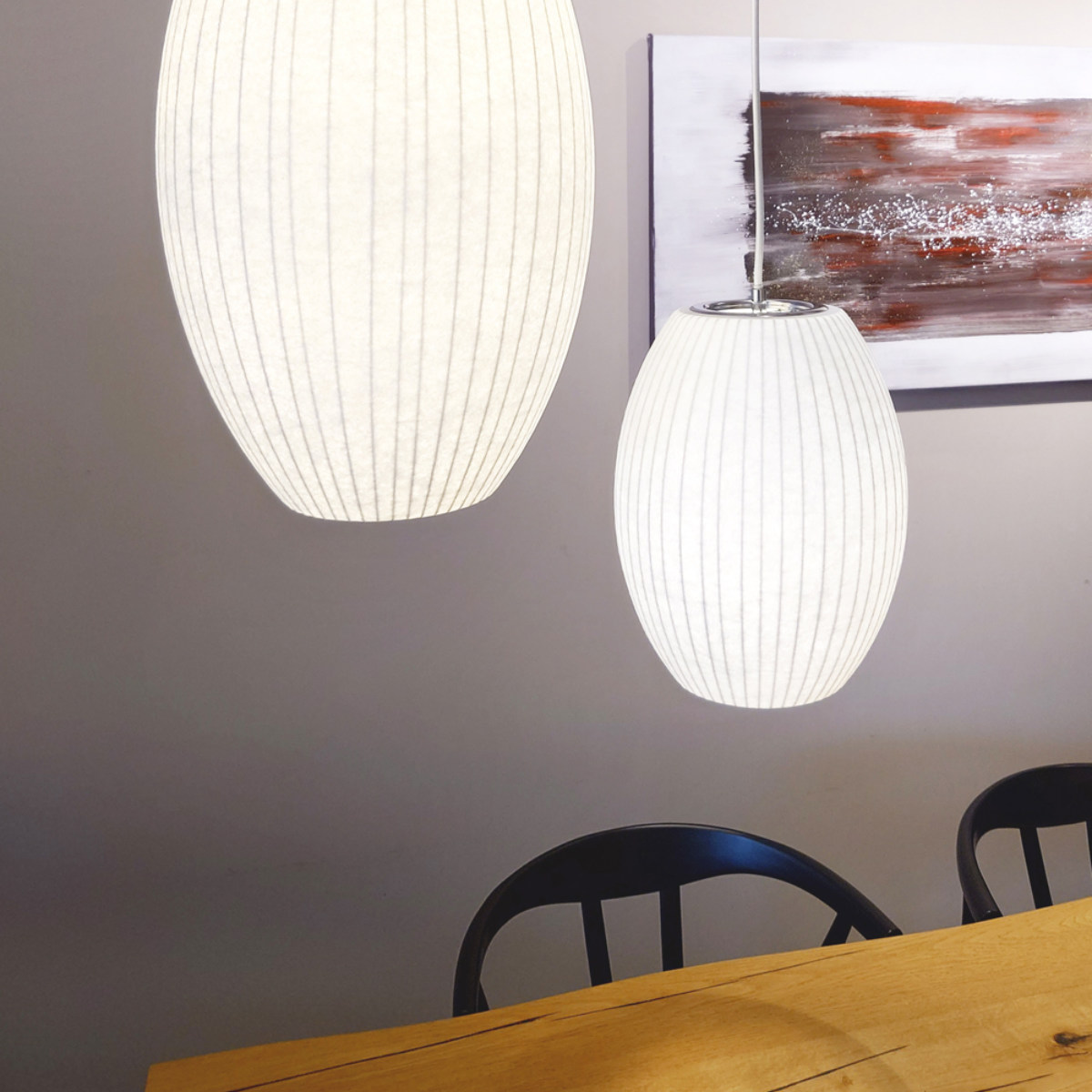 世界のミッドセンチュリーファンに圧倒的な人気を誇る、ジョージ・ネルソンのバブルランプです。シンプルながらもぱっと目を引く特徴的なフォルムがお部屋のアクセントに。和紙のようなシェードが電球を包み込み、ほわんとしたやわらかい灯りを灯します。