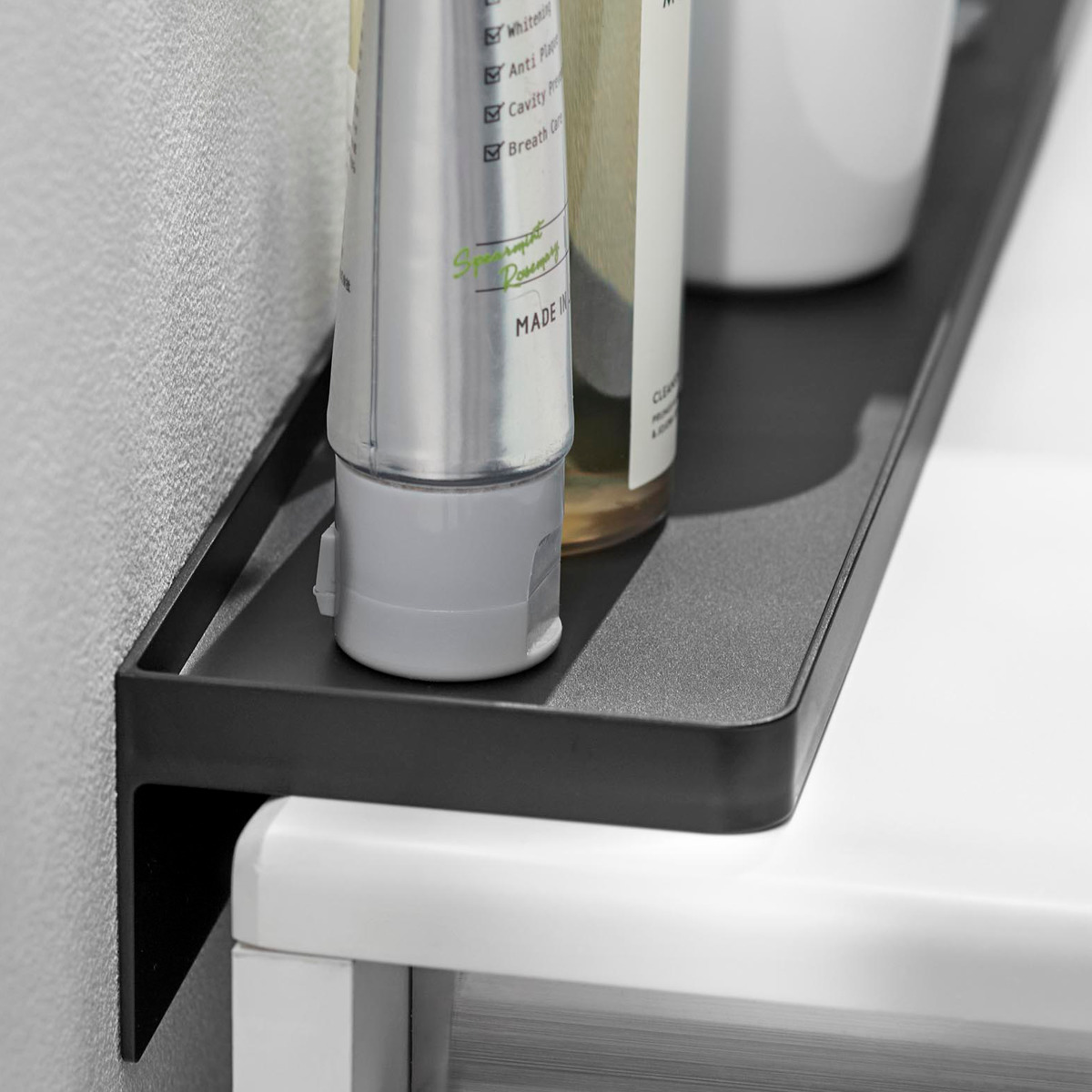 洗面台横と壁の隙間に差し込んで設置
