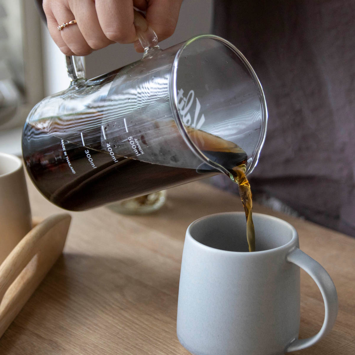 しっかり握れる取っ手と注ぎ口があるのでマグカップに注ぎやすいです。