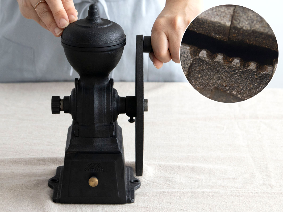 硬質鋳鉄製臼歯使用で、切れ味が長持ちしスムーズに挽くことができます。