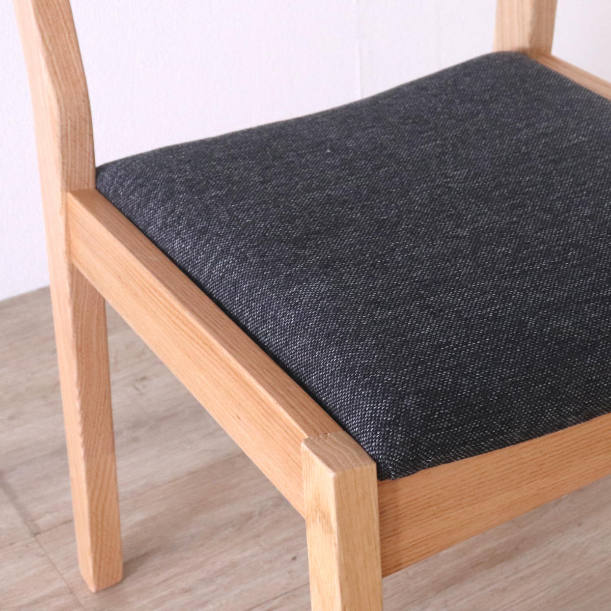 座面はチャコールグレイのファブリックで仕上げてあります。ウレタンのクッション材を使用しており、程よい弾力のある優しい座り心地です。