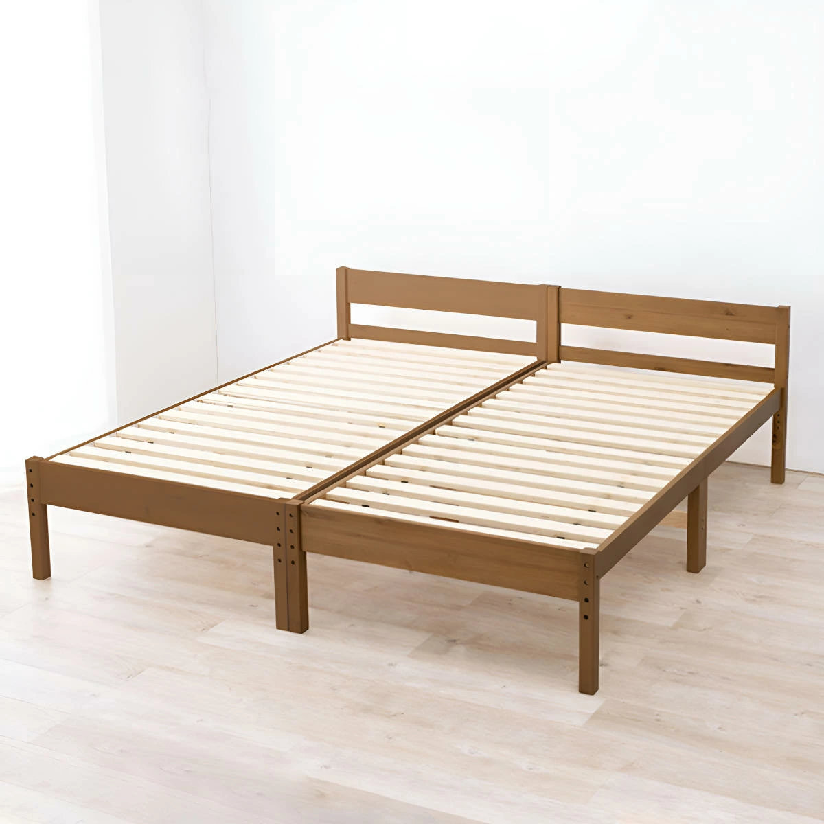 敷布団も使える、床面高さ調節可能な天然木すのこベッド