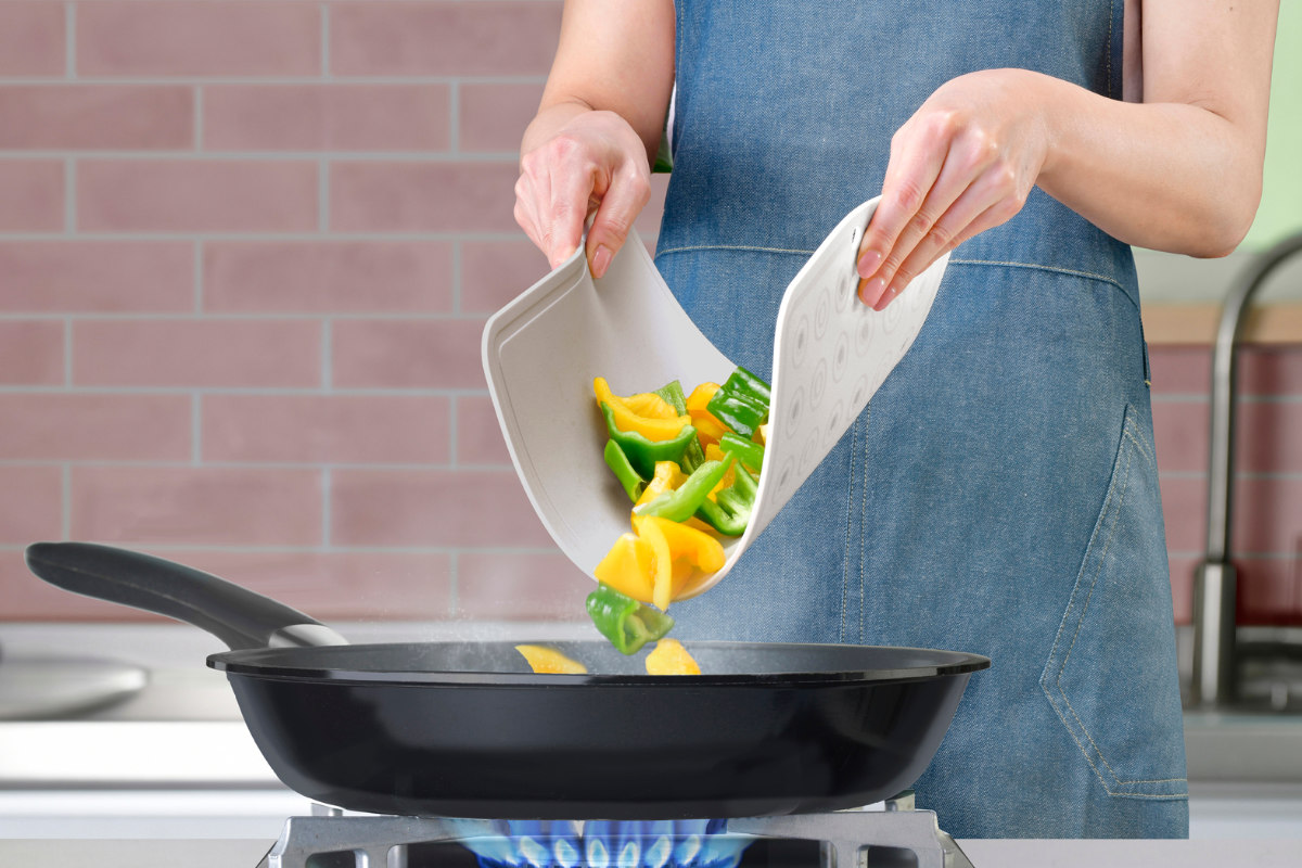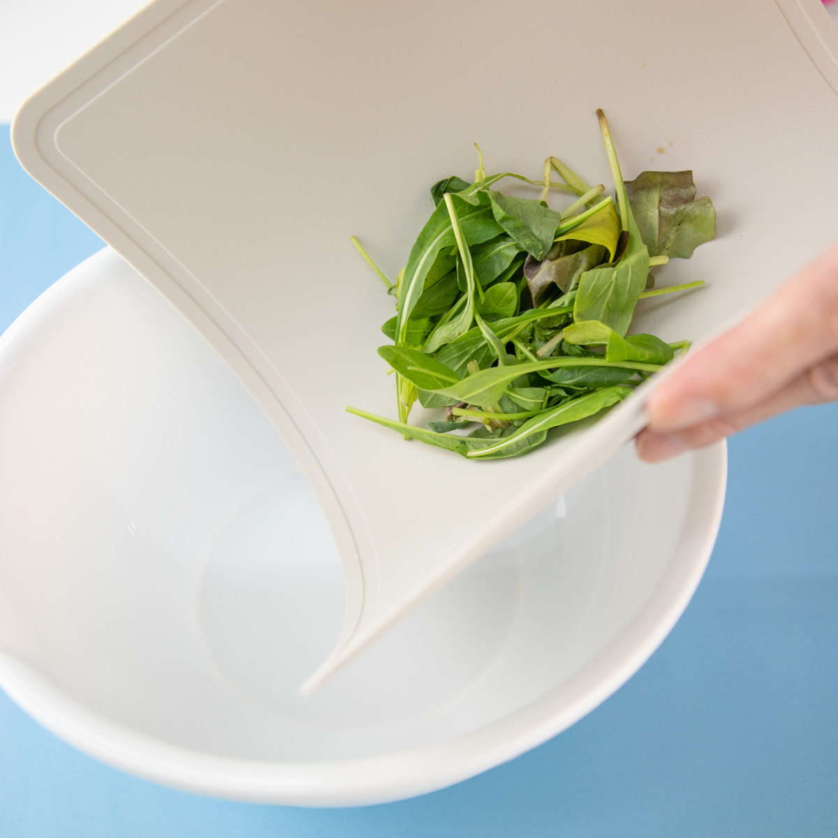 重さわずか246g、やわらかく、曲げられるので切った食材をフライパンや鍋に移しやすいです。