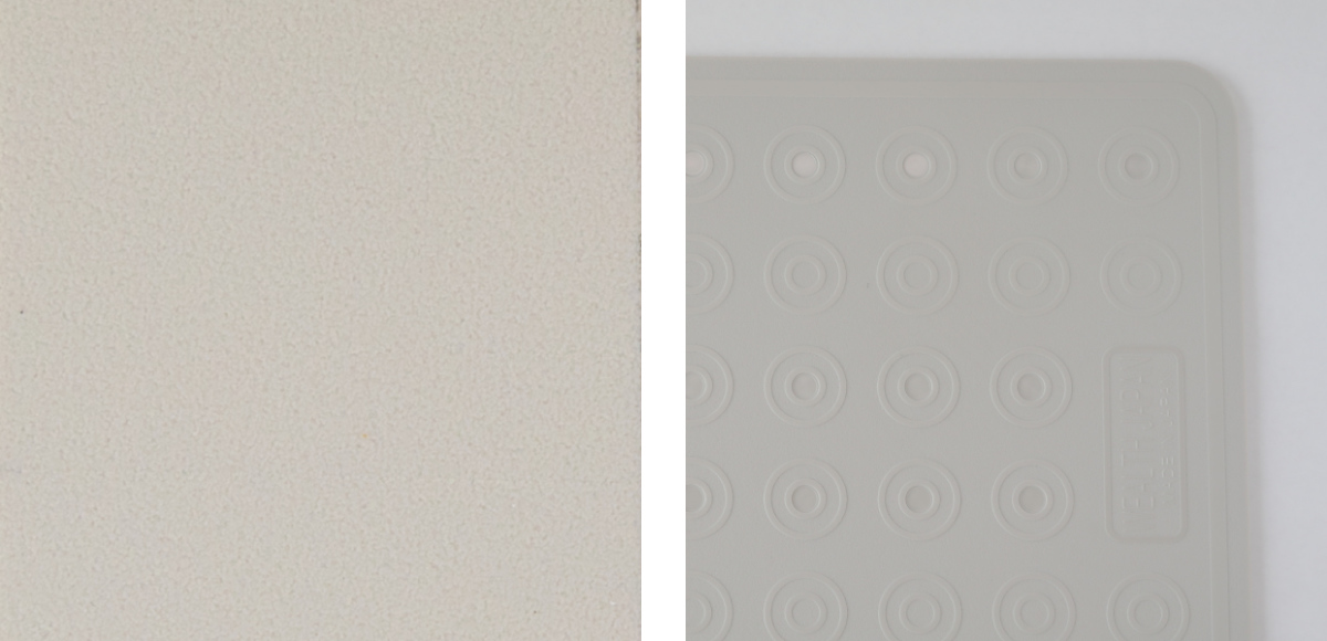 表面はザラザラ加工で食材が滑りにくく、裏面には滑り止め加工が施されています。