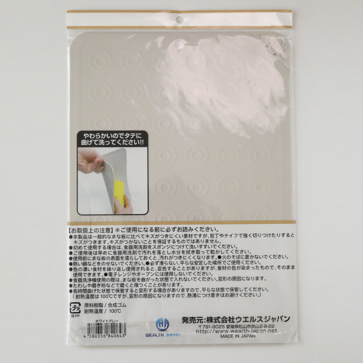新素材「合成ゴム」で魔法の弾力、キズに強いまな板です。3つの魔法により長くお使いいただけます。