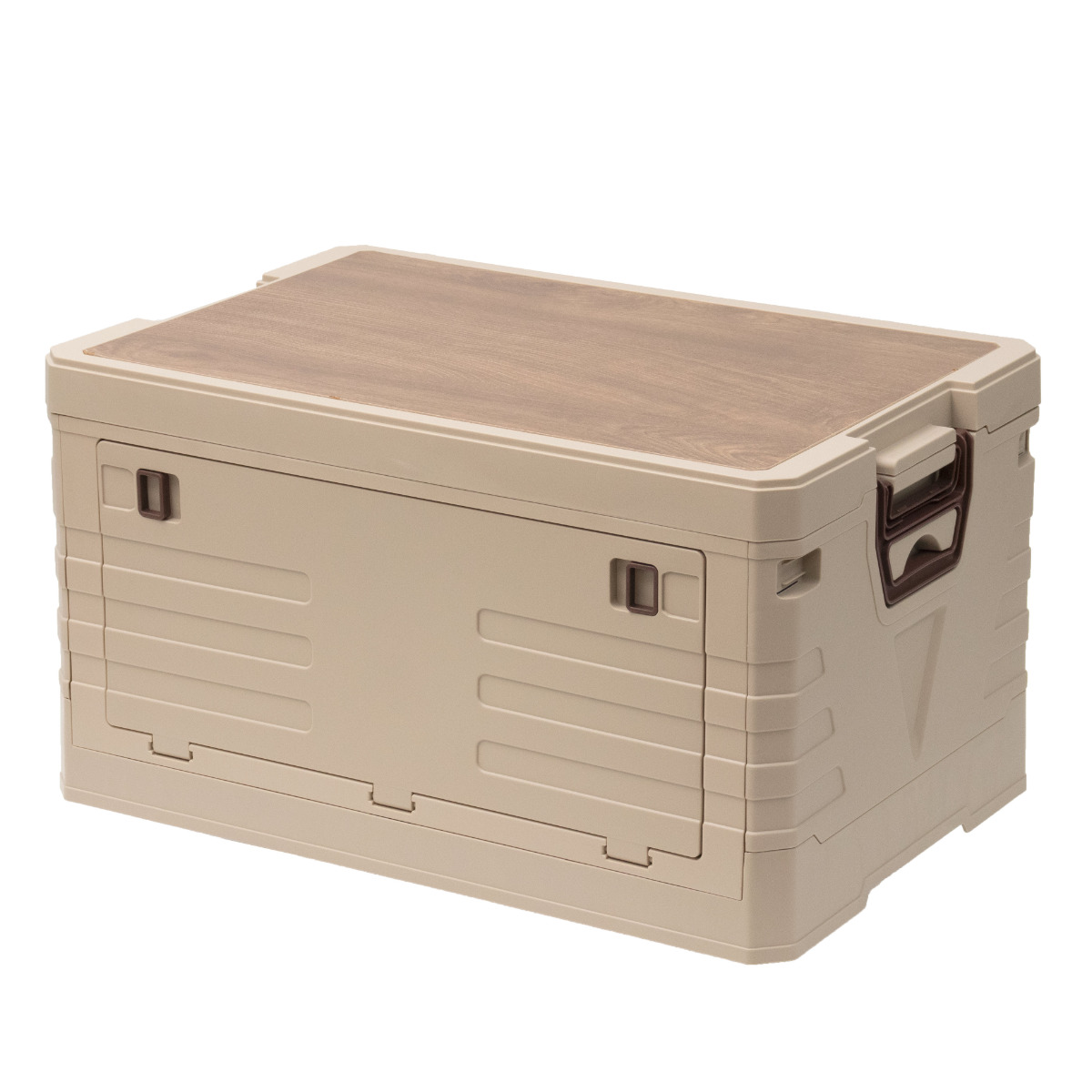 蓋には温かみの感じられる木目調の天板が付いています。アウトドアやレジャーシーンではテーブルとしてもお使いいただけます。また、天板は取り外しが可能です。