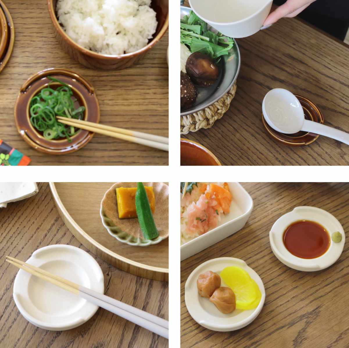 お鍋などのお玉を乗せたり、箸置きとして使用したり、ちょっとだけ食べたい漬物やおかずを入れる小皿として使ったり、箸休めに使ったりと、様々な使い方ができて便利です。