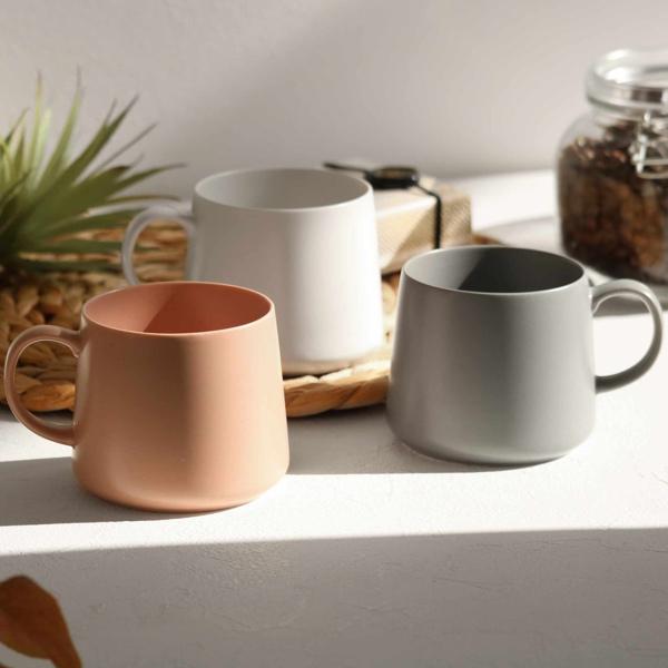 飲み口に向かって狭くなり、底に向かってどっしりとした安定感のあるフォルム。コーヒーや茶葉の香りをカップ内に滞留させ、一口飲むごとにアロマを楽しむことができます。仕事の合間のひと時に、家事を終えた一人の時間に、ほっとリラックスできる心地よい時間にぴったりです。
