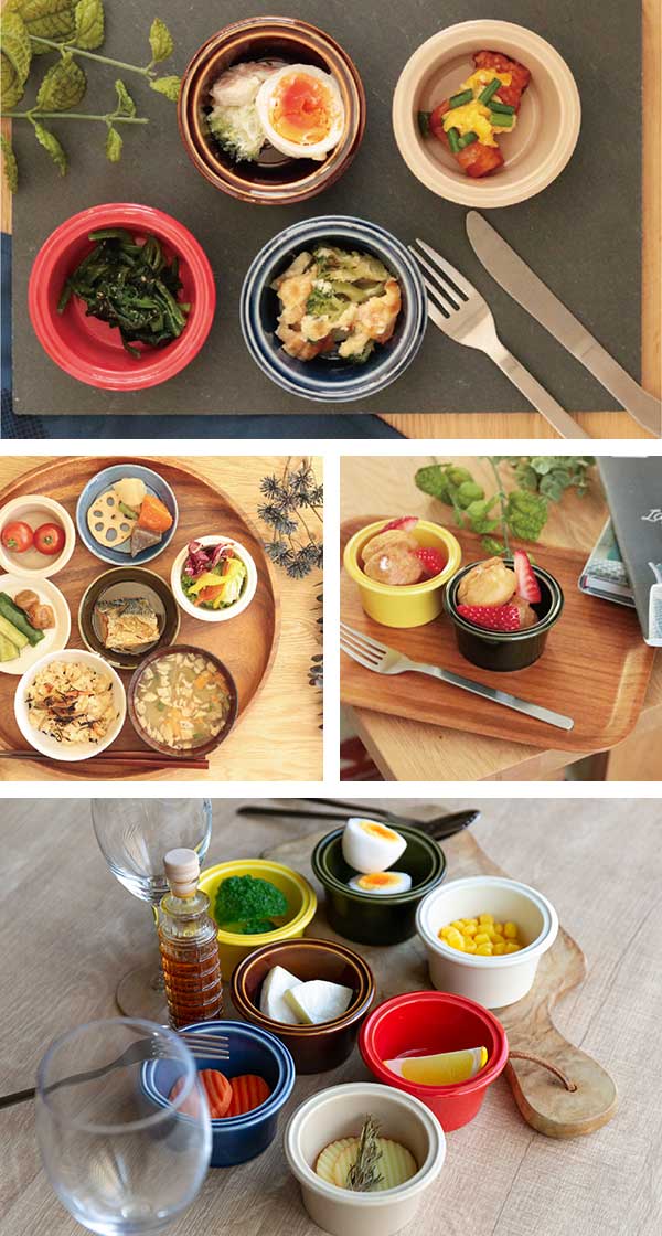 小鉢料理やマカロニサラダなど少量で楽しめるメニューにぴったりです。ヨーグルトやアイスなどのデザートに、また豆皿と一緒にトレイの上に並べてワンプレート料理にも使えます。
