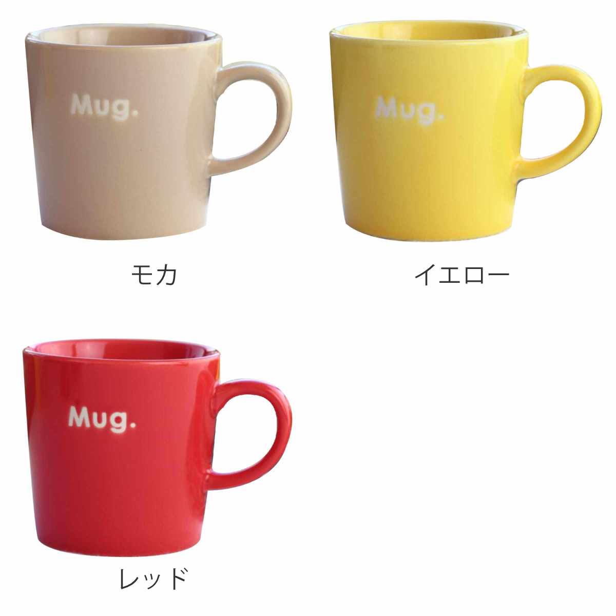 ツヤツヤのガラスのような質感です。カラーの濃淡が際立ち、前面にデザインされた文字がアクセントに。シンプルでカラフルなデザインが心ときめくマグカップです。