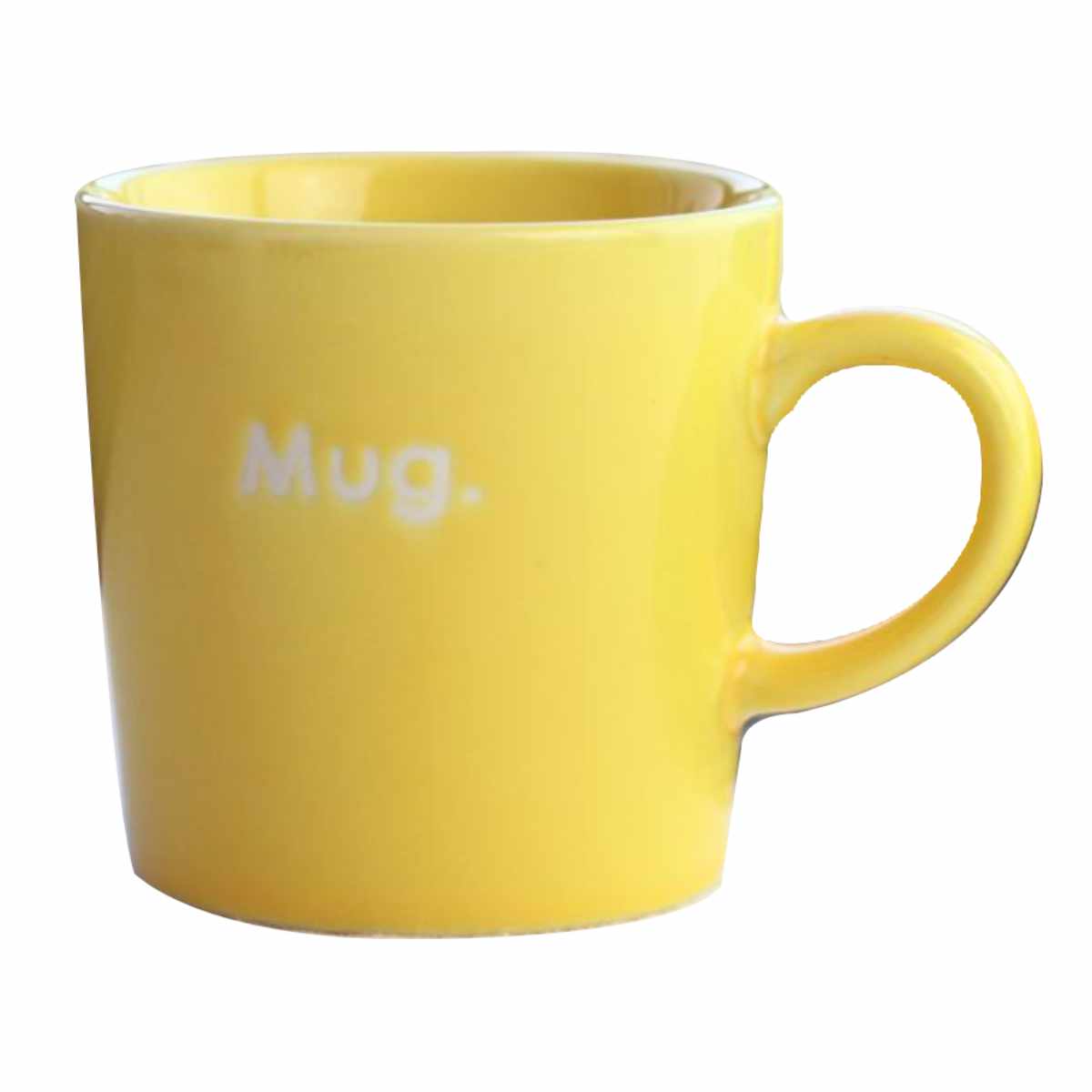 ツヤツヤのガラスのような質感です。カラーの濃淡が際立ち、前面にデザインされた文字がアクセントに。シンプルでカラフルなデザインが心ときめくマグカップです。