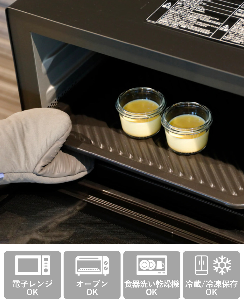 電子レンジ・オーブン・冷凍保存・熱湯・食器洗浄機すべてに対応しています。調理から保存、温め直し、お手入れまで、すべてをこの容器ひとつで完結できます。また、煮沸消毒もできるので衛生面でも使い勝手が良く、嬉しいポイントです。