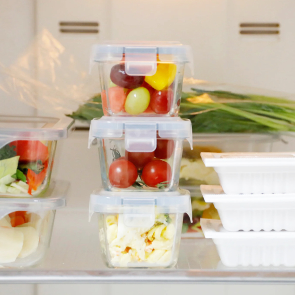 少しだけ残った副菜やカットした野菜の保存にピッタリです。冷蔵庫内のスペースを無駄にしないミニサイズは使い勝手抜群。お弁当に添えるフルーツ入れとしてもおすすめです。
