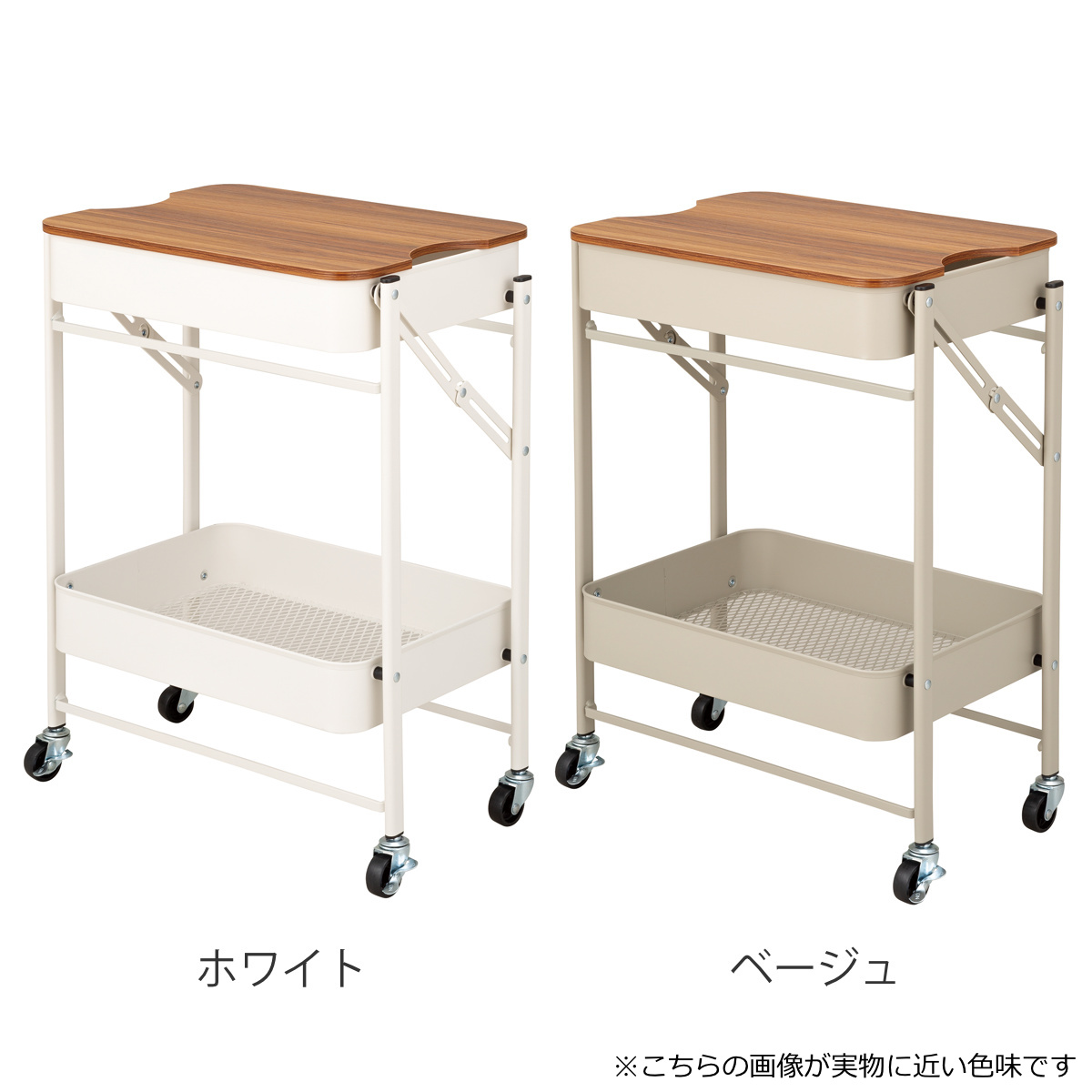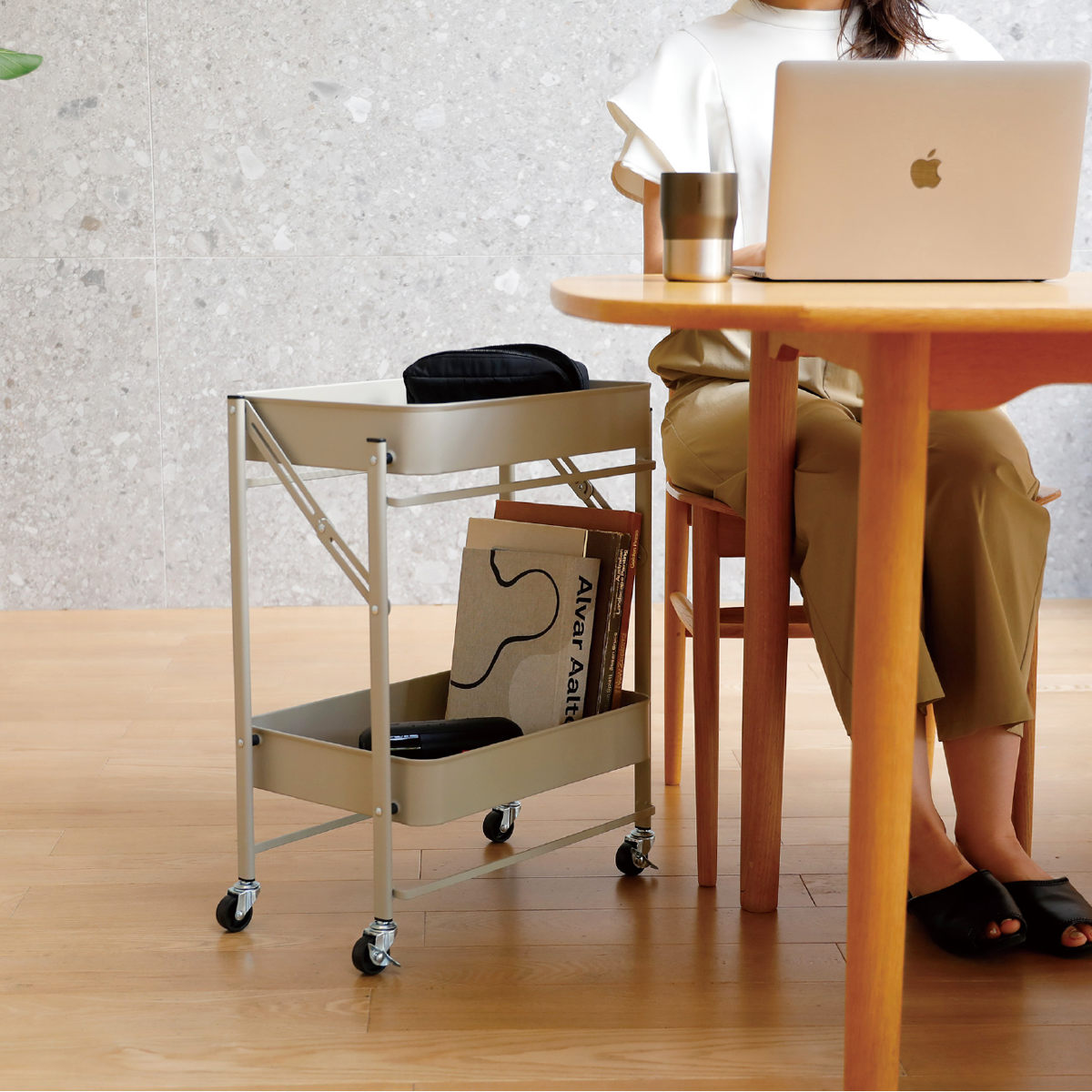 ●ほぼ組み立ていらずな折りたたみ2段ワゴンです。