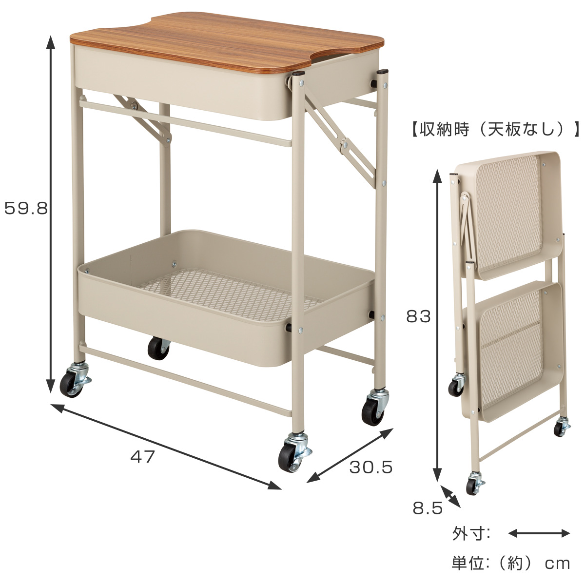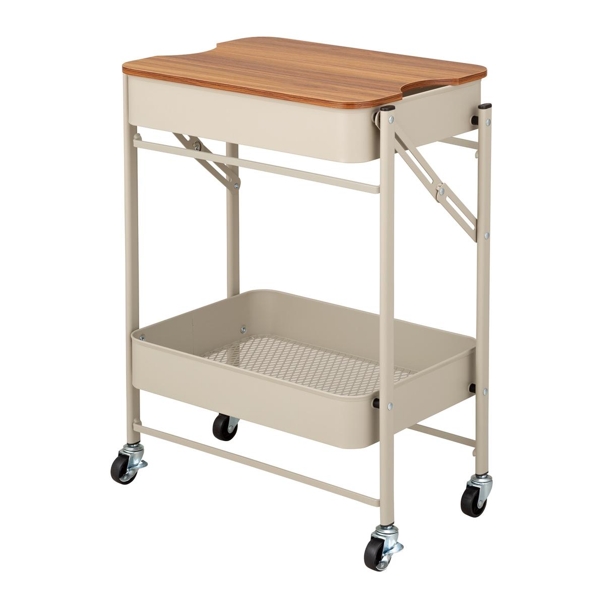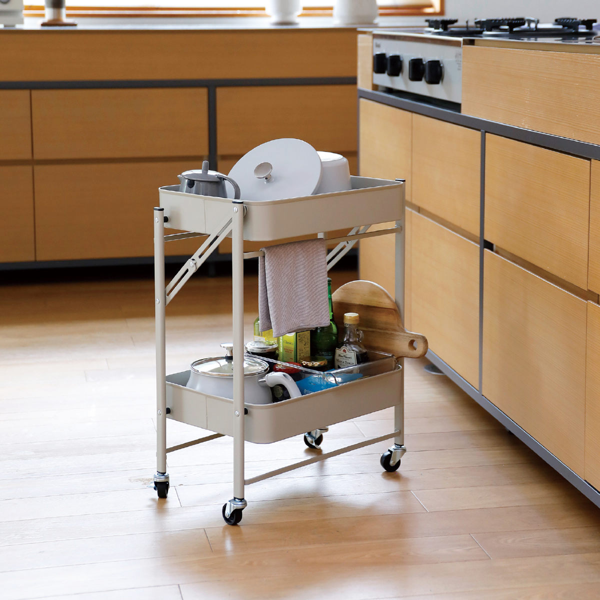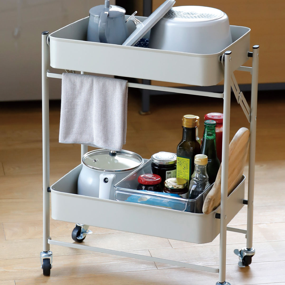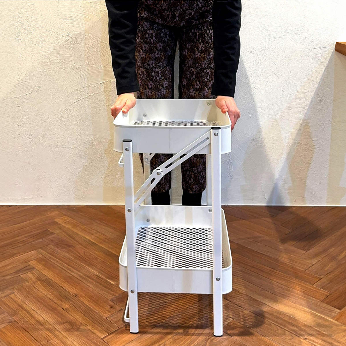 ほぼ組み立ていらずで折りたたみできる2段ワゴン