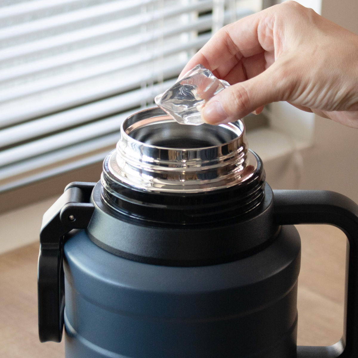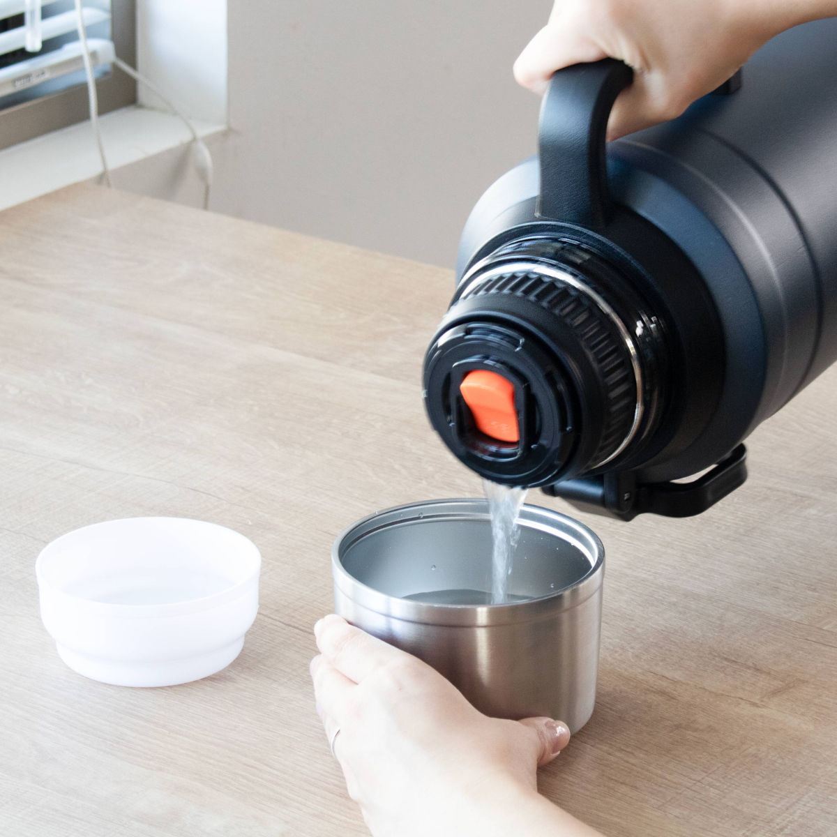 | 材質 | 内びん:ステンレス鋼 胴部:ステンレス鋼(ポリエステル粉体塗装) 外コップ・弁外側:ステンレス鋼 内コップ・中せん:ポリプロピレン 開閉スイッチ:ABS樹脂 注ぎ用ハンドル・持ち手:ポリプロピレン パッキン・すべり止め:シリコーンゴム |