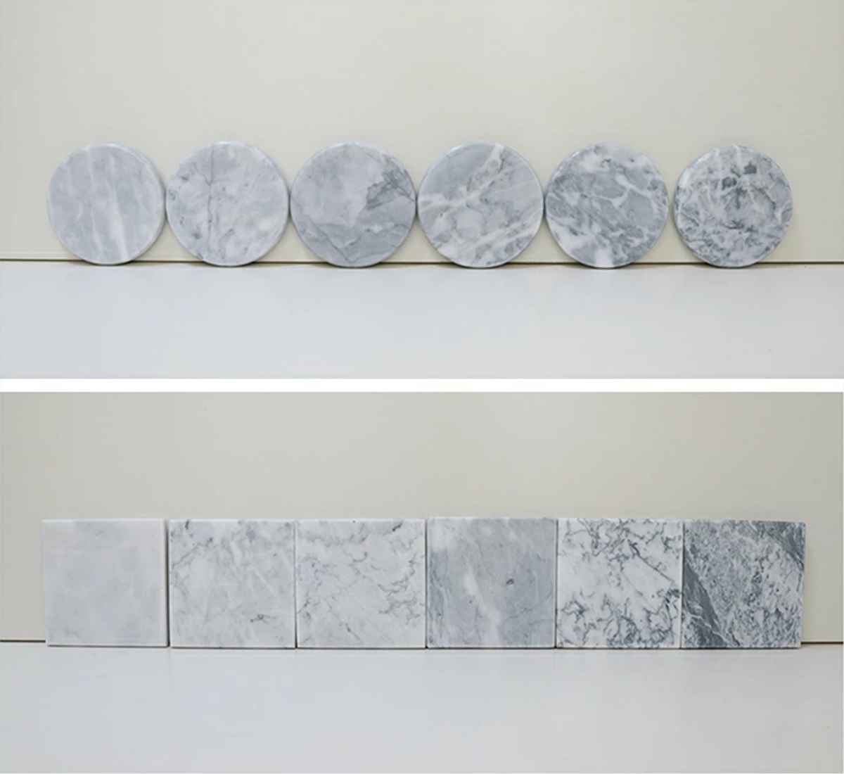 天然石のため、一つ一つの模様に個体差があります。画像のように、マーブル模様が薄いものから濃くはっきりとした物まで、その個性は豊です。上記の範囲を良品としてお届けさせていただきます。