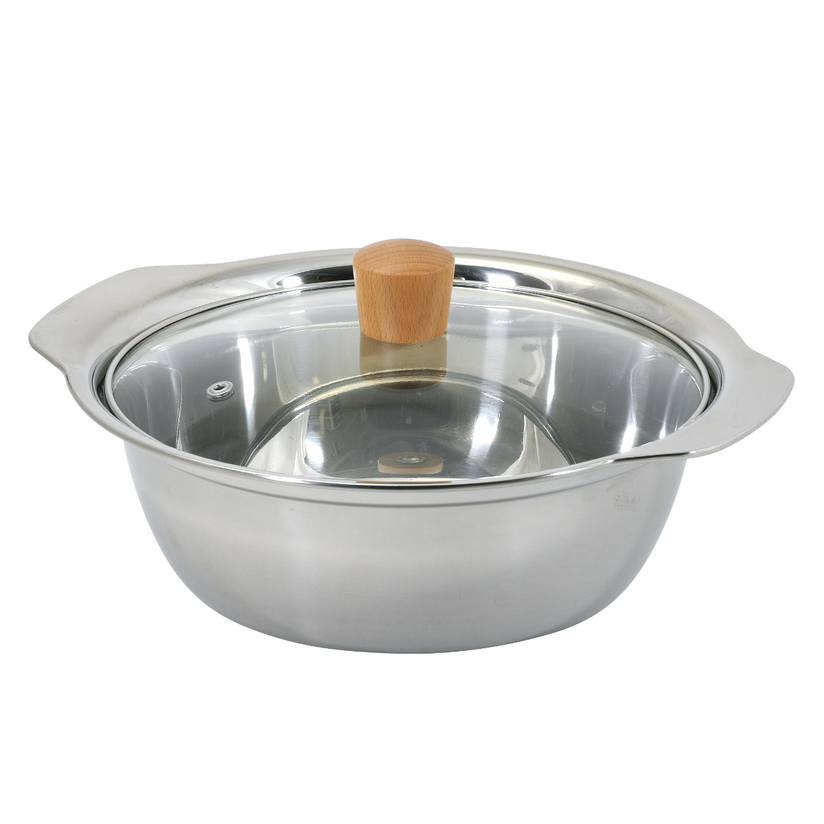 | 材質 | 本体:ステンレス鋼(クロム14%) 蓋:強化ガラス製器具(全面物理強化) 蓋縁リング:ステンレス鋼 つまみ:天然木 |