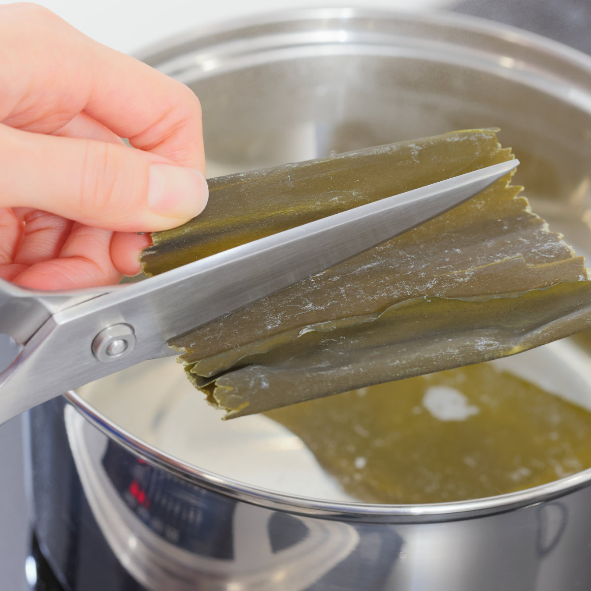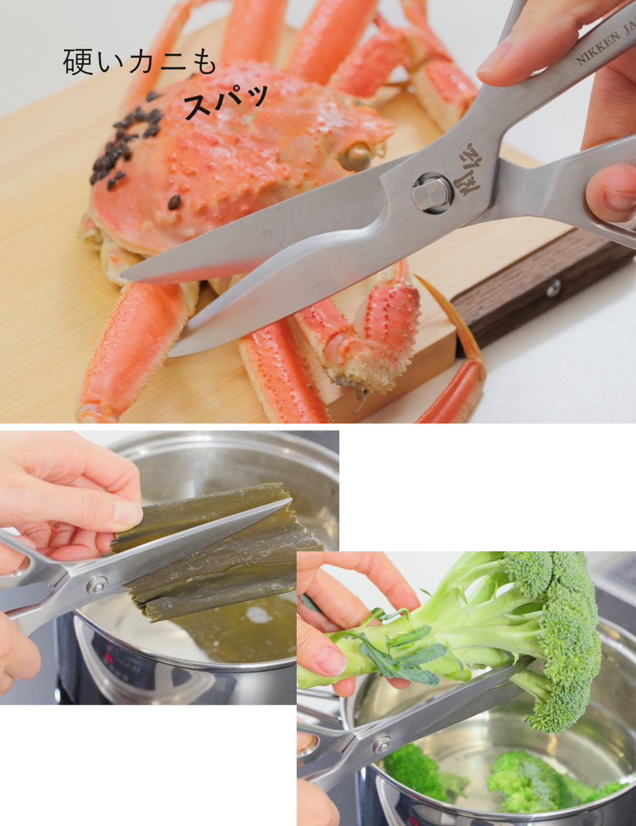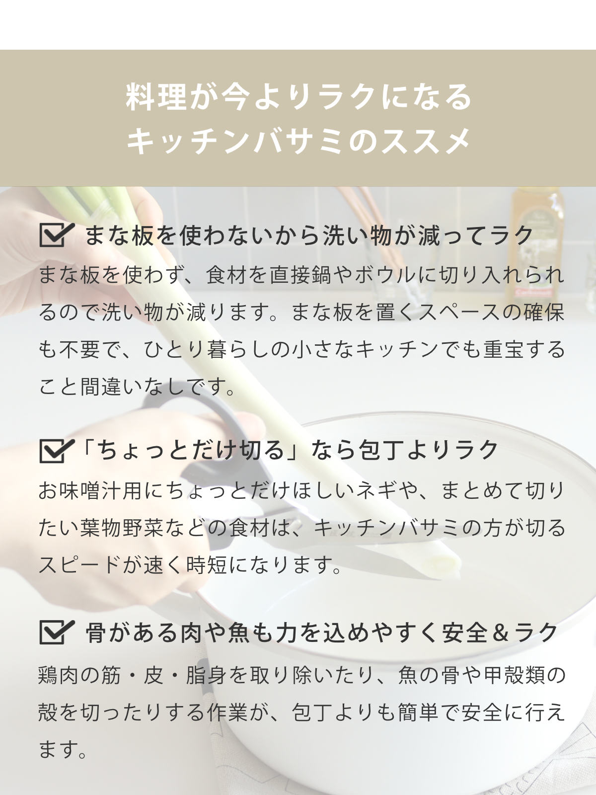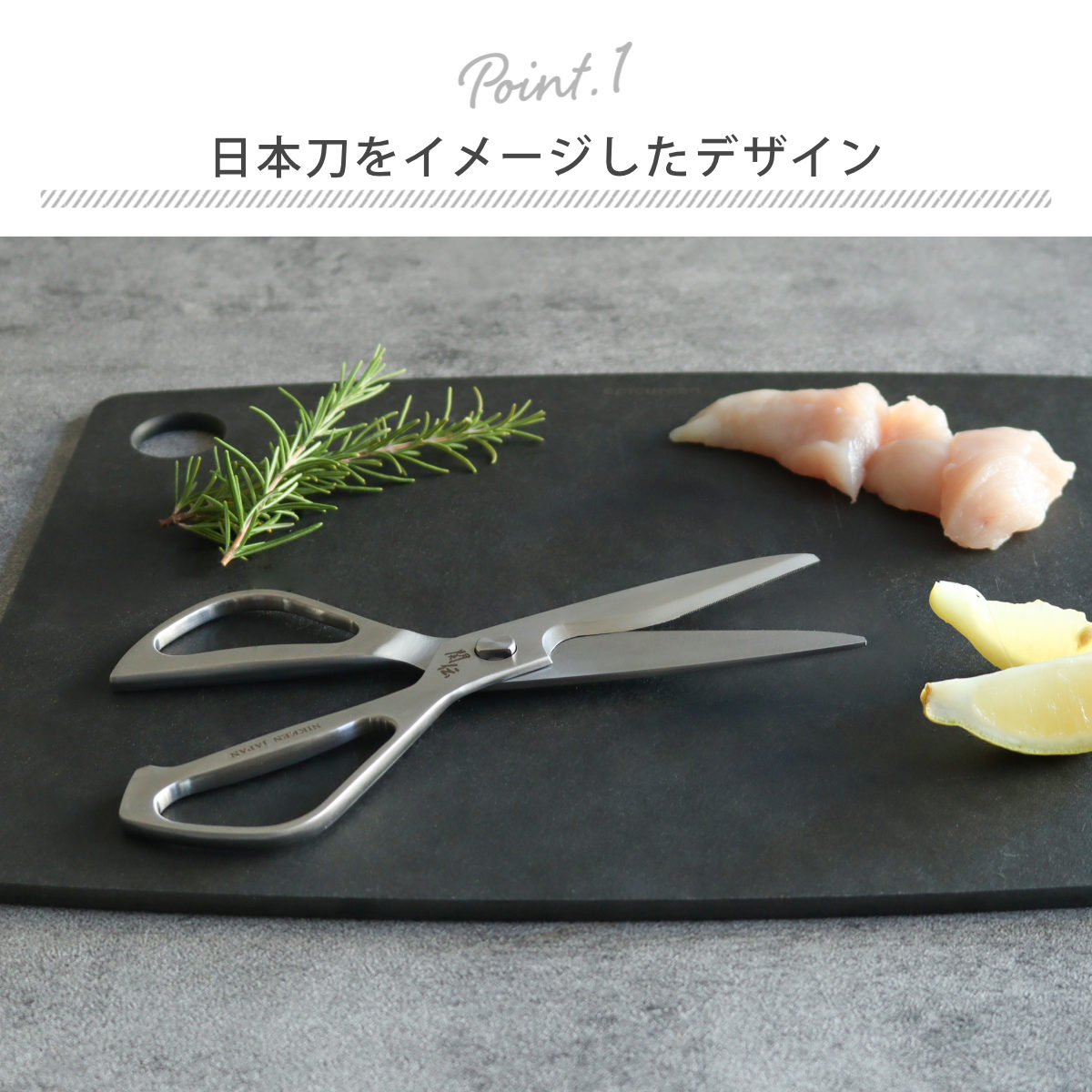 日本刀を思わせる曲線形状が美しく、「シャキン」「カチン」と音まで本格的。格好良い出で立ちのハサミが、料理へのモチベーションを高めてくれます。