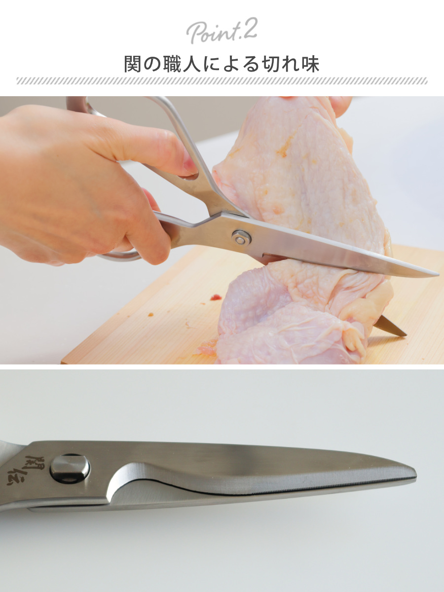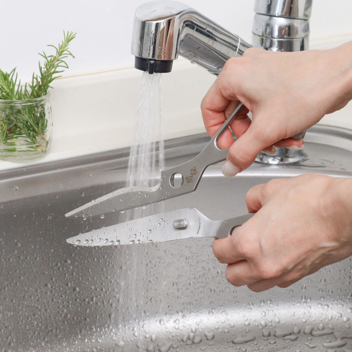 オールステンレスのスタイリッシュなキッチンばさみです。ハサミを知り尽くした関の職人が、切れ味と実用性を意識して作り上げました。